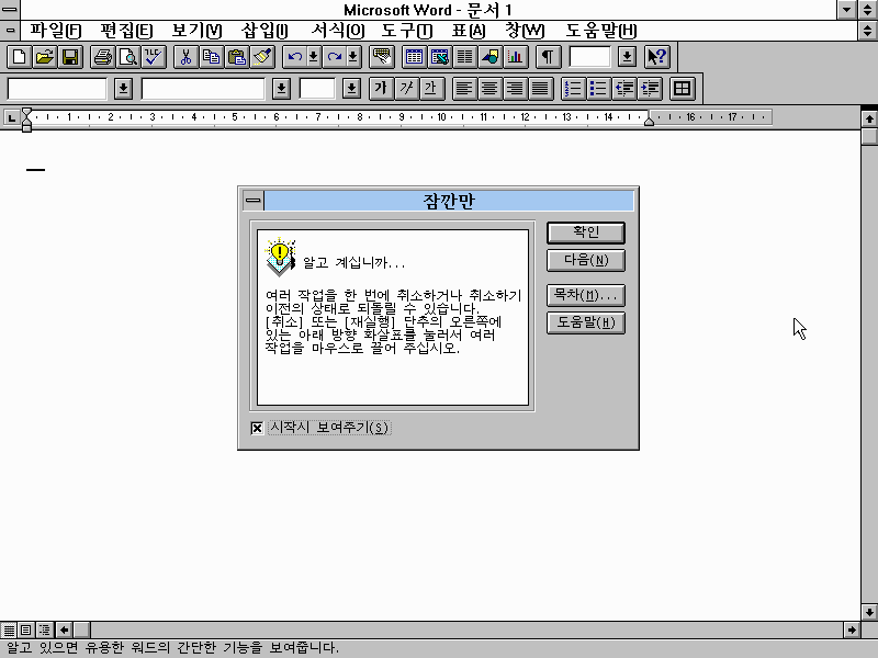 워드 6.0 정식판의 모습입니다. 평가판과 별 차이는 없습니다.