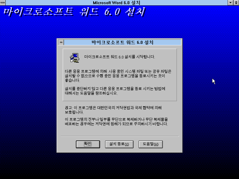 Microsoft Word 6.0을 설치해보았습니다. 이전에 평가판을 설치했을 때 티스토리에 글을 올렸었는데, 그때는 정식판을 못 구해서 아쉬웠습니다. 최근에 정식판을 입수해서 설치 후 설치기를 올려봅니다.