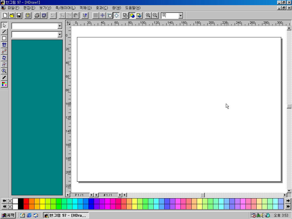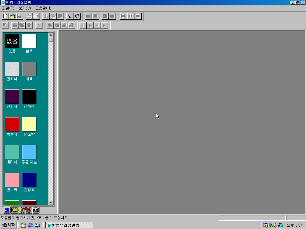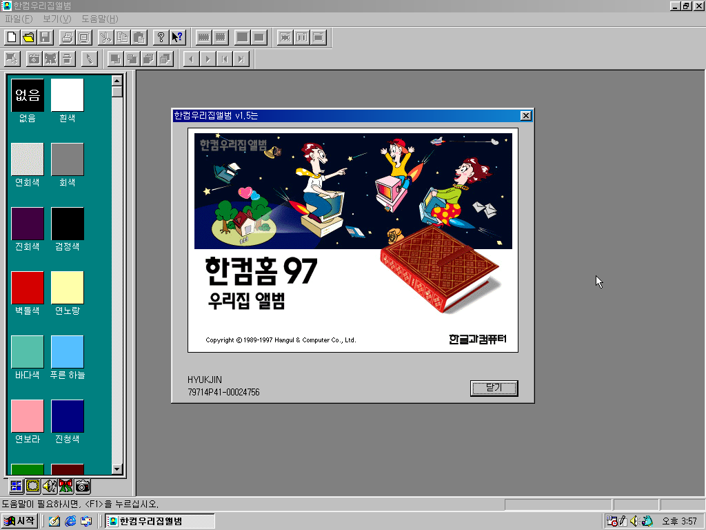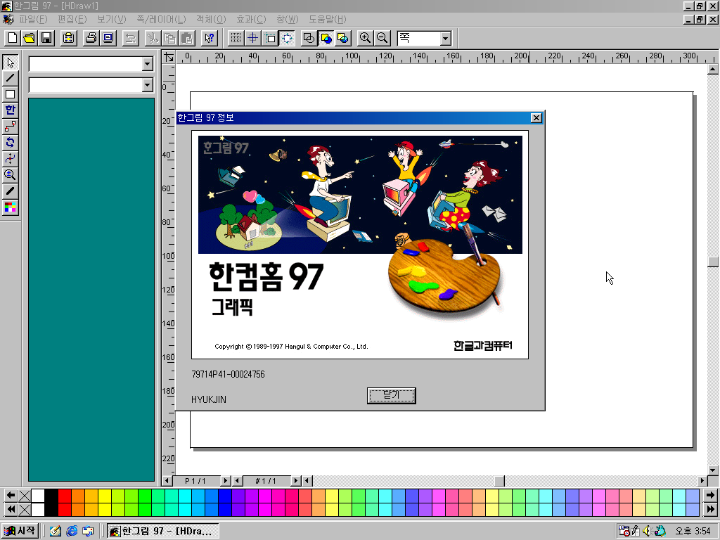 한컴홈 97 그래픽 정보입니다. 팔레트에 물감 그림은 똑같고, 뒤에 그림만 바뀌었습니다.