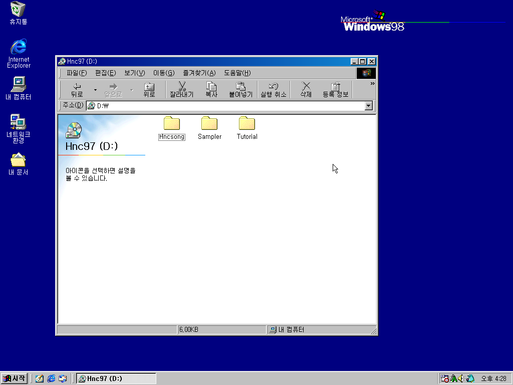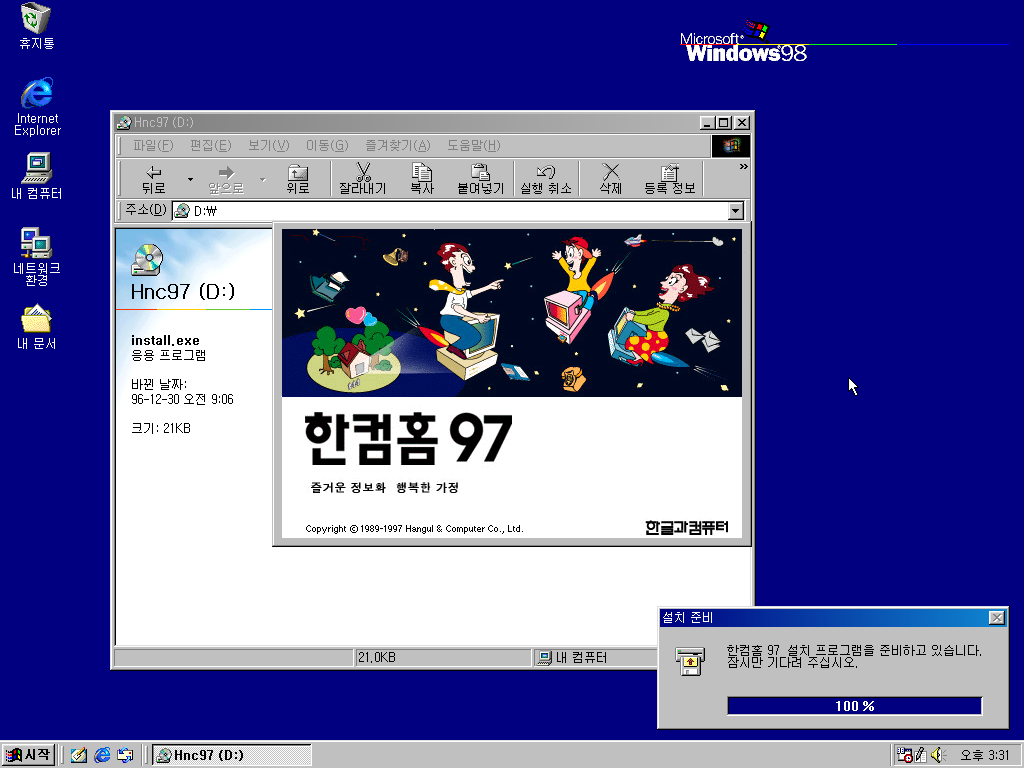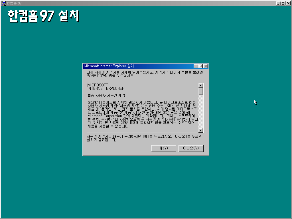 한컴오피스 97과 마찬가지로 인터넷 익스플로러를 설치합니다.