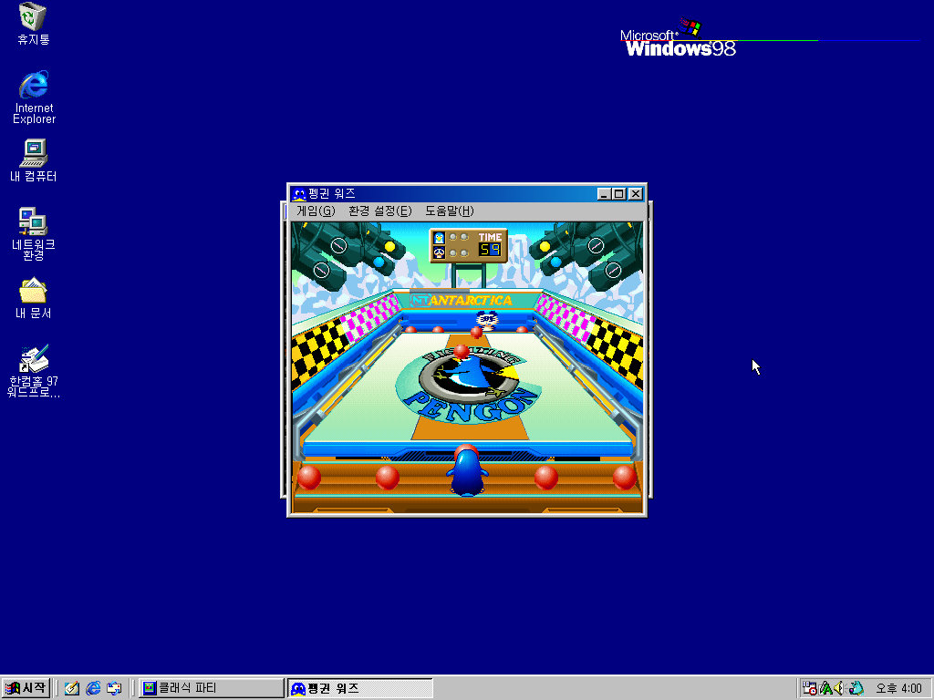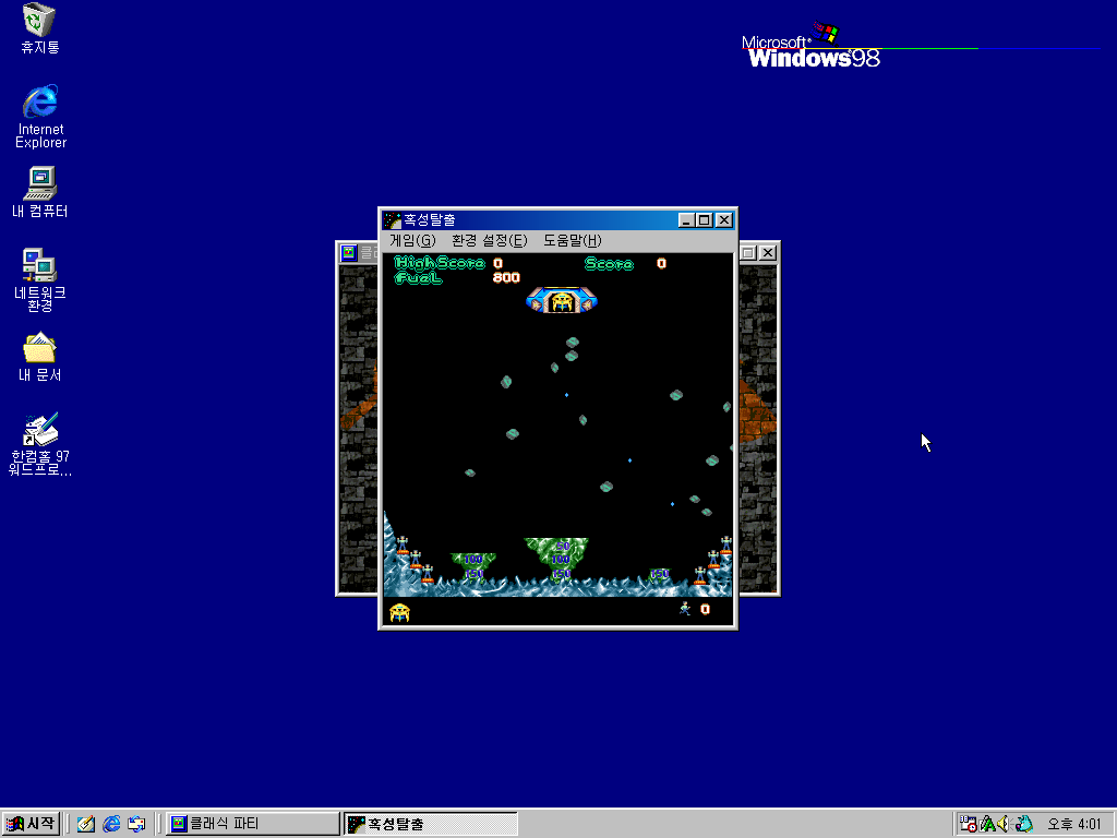 다음은 한컴홈 97 즐거운 게임입니다. 이 게임 패키지에는 6가지 게임이 있습니다.