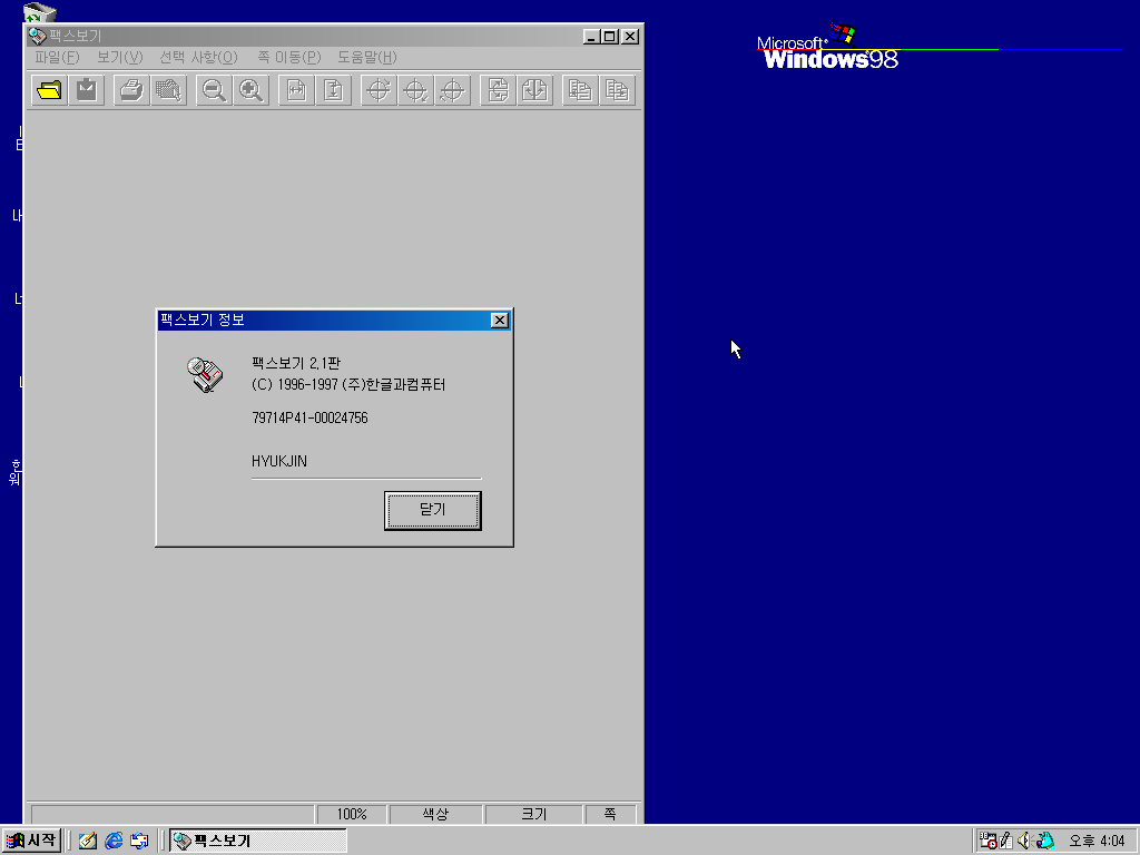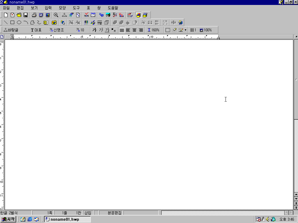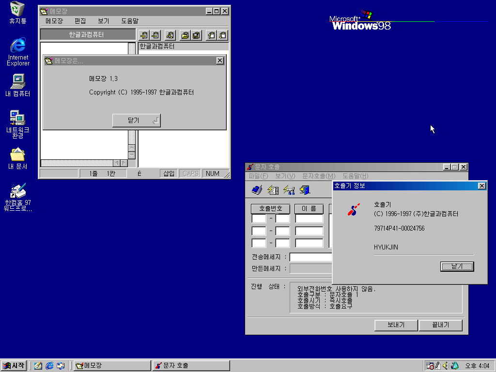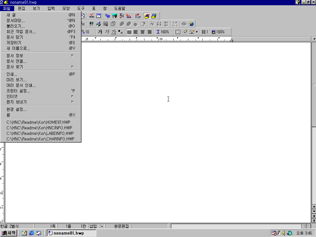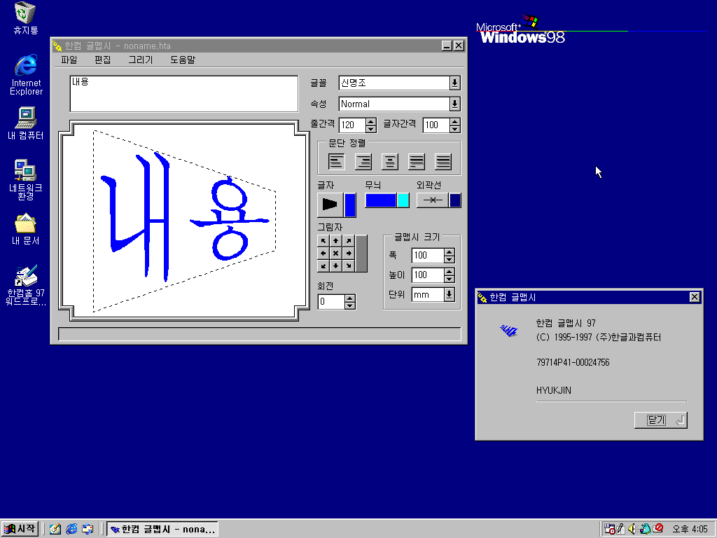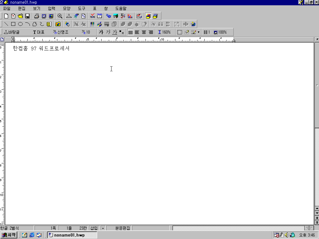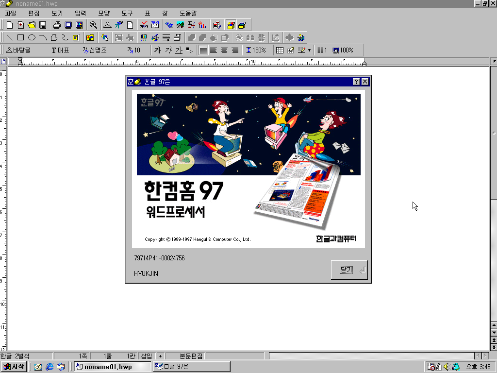 한글 97의 모습입니다. 정식판과 별다를 건 없습니다.