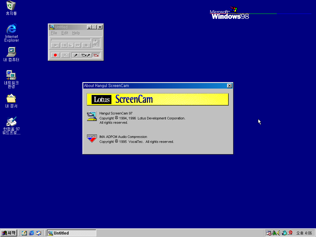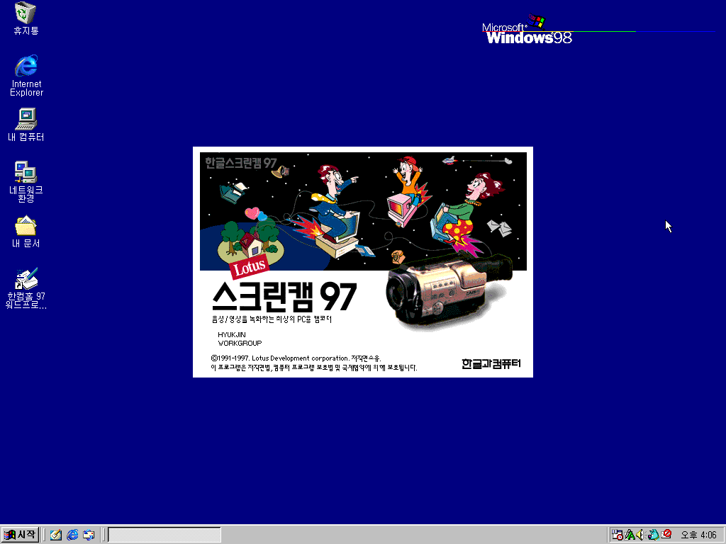 이제 로터스 계열 프로그램입니다. 일반적인 한컴오피스 97에는 로터스 1-2-3을 비롯한 사무용 프로그램들이 많이 들어갔지만, 가정용이라서 그런지 사무용 프로그램 몇 개는 빠졌습니다. 스크린캠 97은 들어가있습니다.