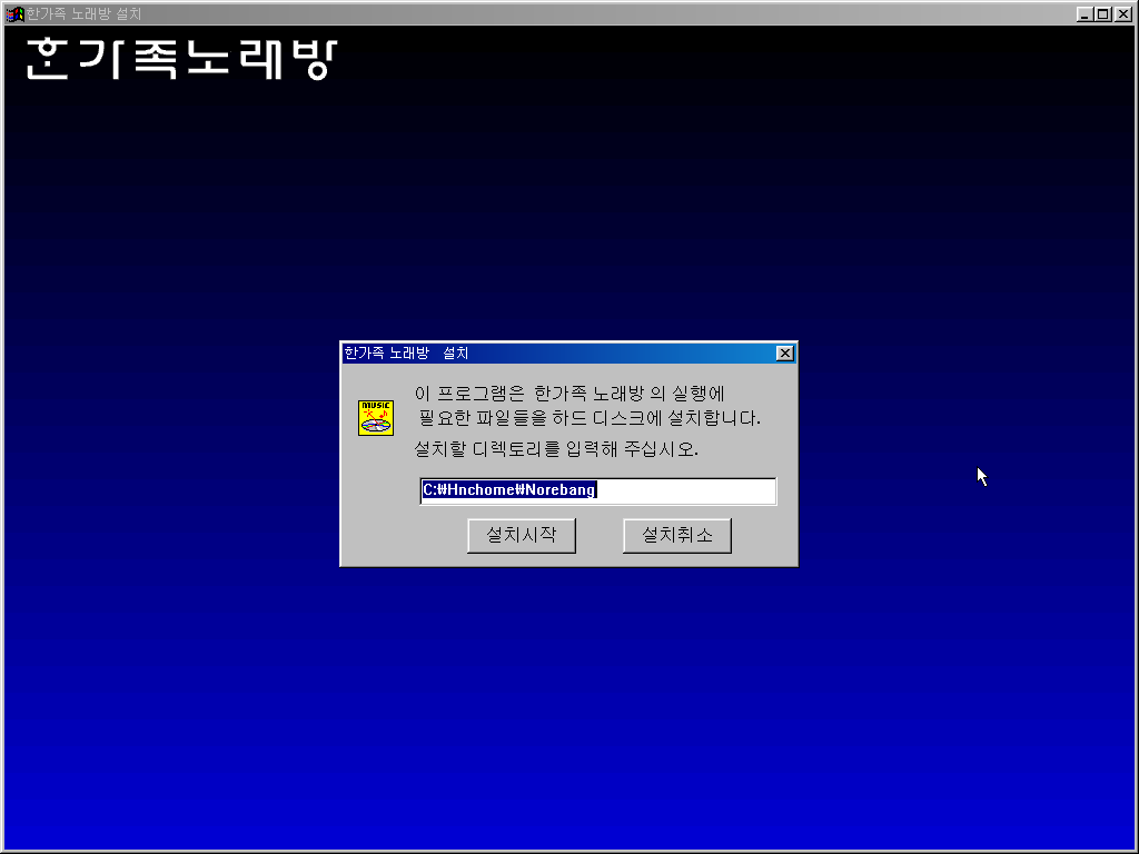 설치 후 한컴홈 97 우리집 노래방을 실행해본 모습입니다.