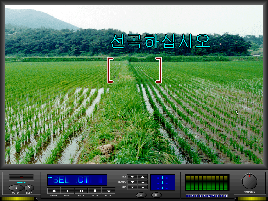 곡 파일이 있어야 제대로 실행 가능합니다. 배경이 참 올드하네요 ㅋㅋㅋ