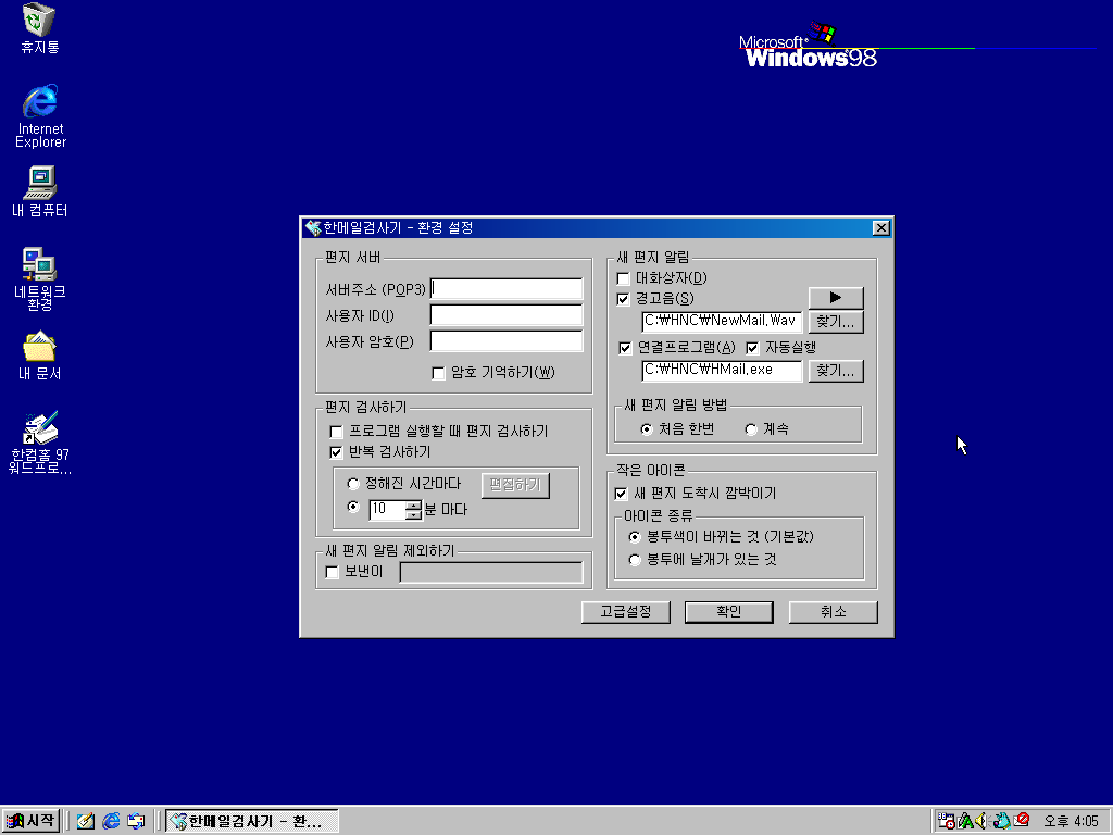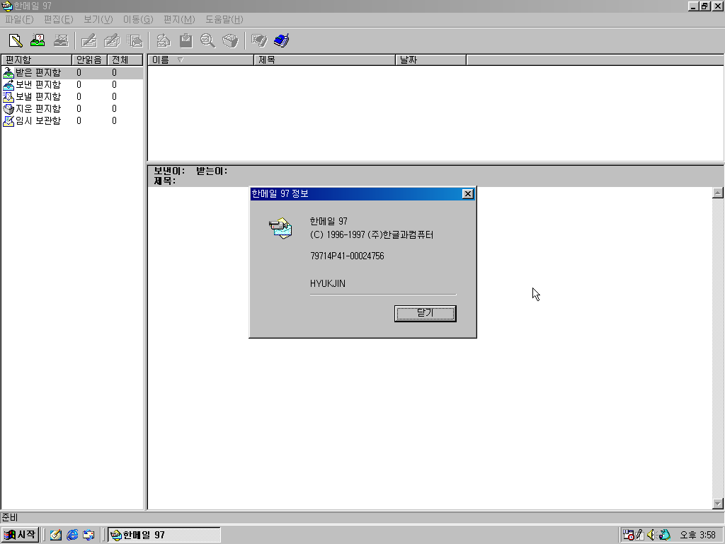 한메일 97입니다. 일반판에 있는 것과 같습니다.