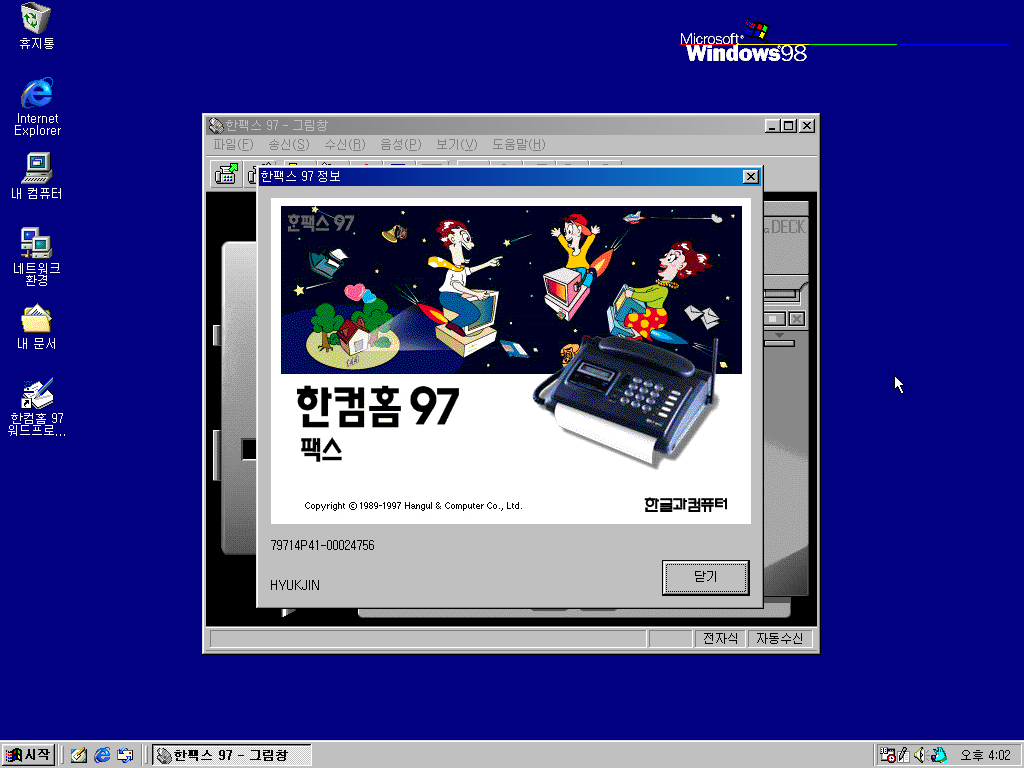 한컴홈 97 팩스 정보입니다.