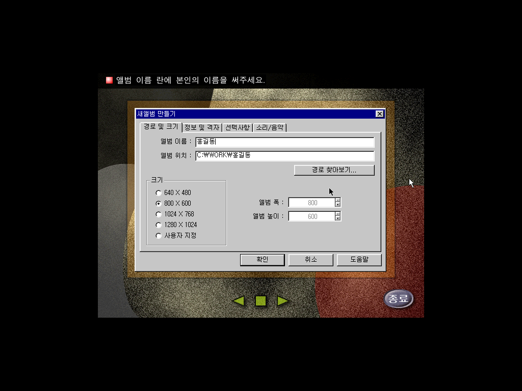 한컴홈 97 우리집 앨범 정보입니다. 앨범 그림이 있습니다.