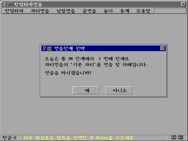 다음은 한컴타자연습입니다. 도스 시절의 물건이라 해상도가 낮습니다.