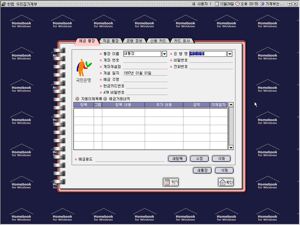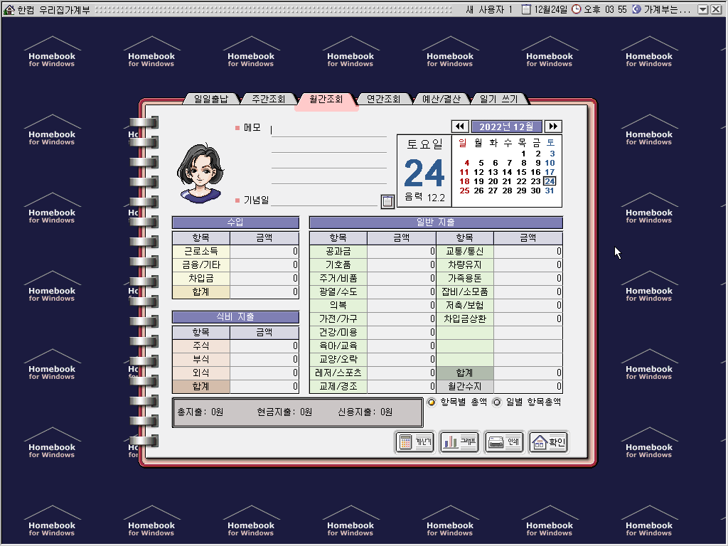한컴홈 97에만 있는 한컴 우리집 가계부입니다.