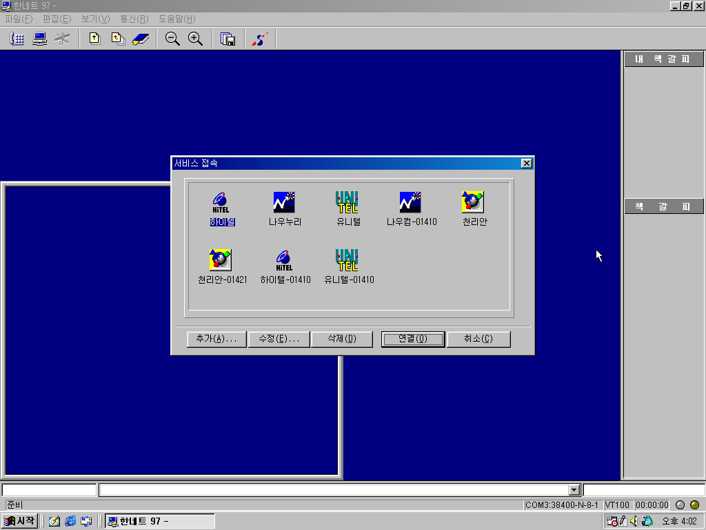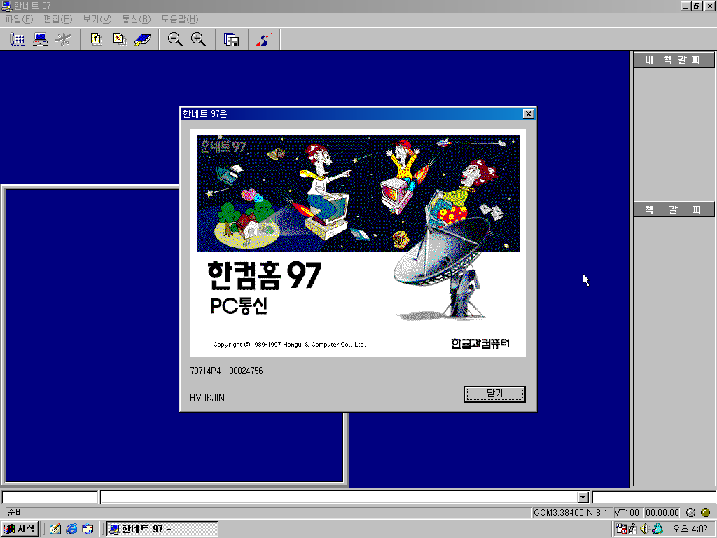 다음은 한컴홈 97 PC통신이라는 이름을 달고 나온 한네트 97입니다. PC통신을 할 수 있습니다.