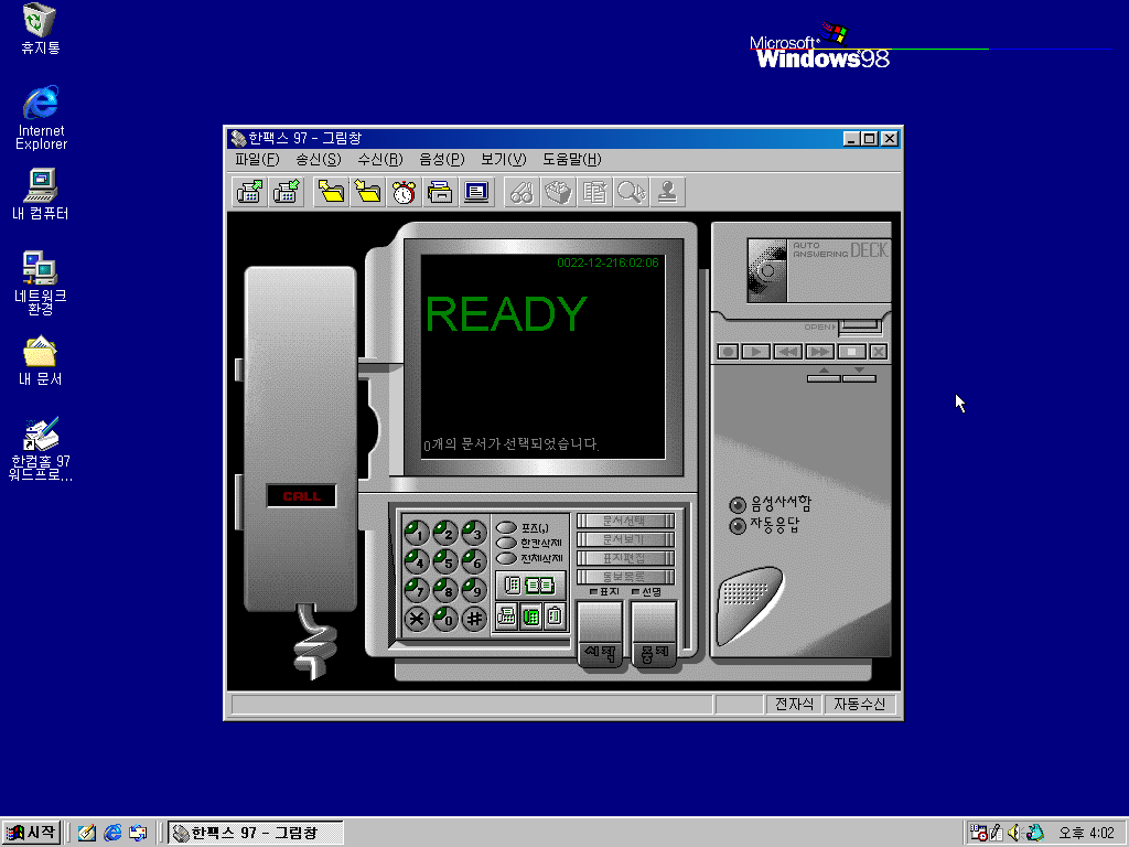 다음은 한컴홈 97 팩스, 즉 한팩스 97입니다. 팩스 기능이 있습니다.