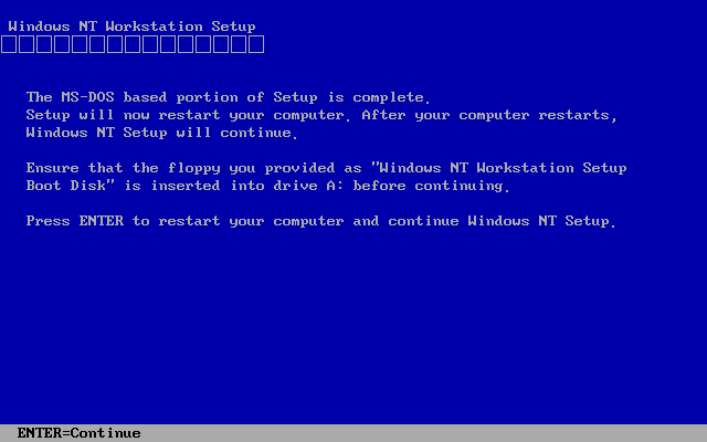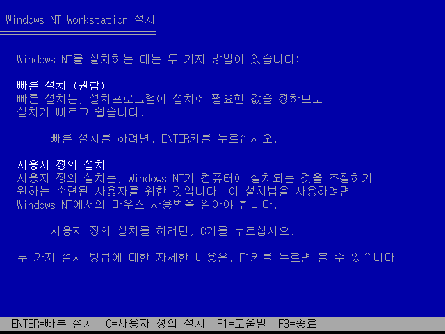 그러면 윈도우 NT 설치가 진행됩니다. 엔터를 누릅니다.