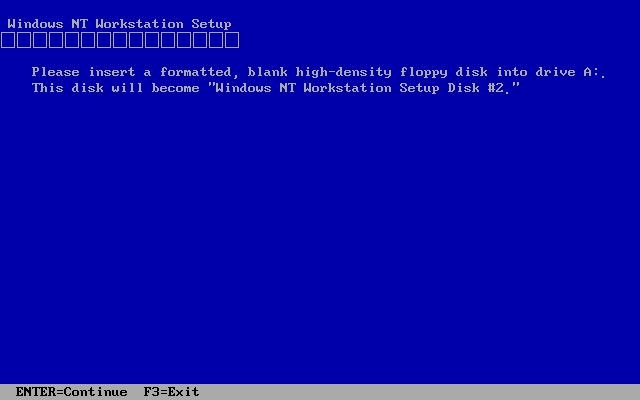 마지막으로 1번이라 이름 붙인 디스크를 넣고 엔터를 누릅니다. 윈도우 NT 부팅디스크 만드는 순서는 실제 설치 시 디스크 넣는 순서의 역순입니다. NT 3.51의 경우 이렇게 4장이 나오고, 3.5의 경우에는 3장이 나옵니다.