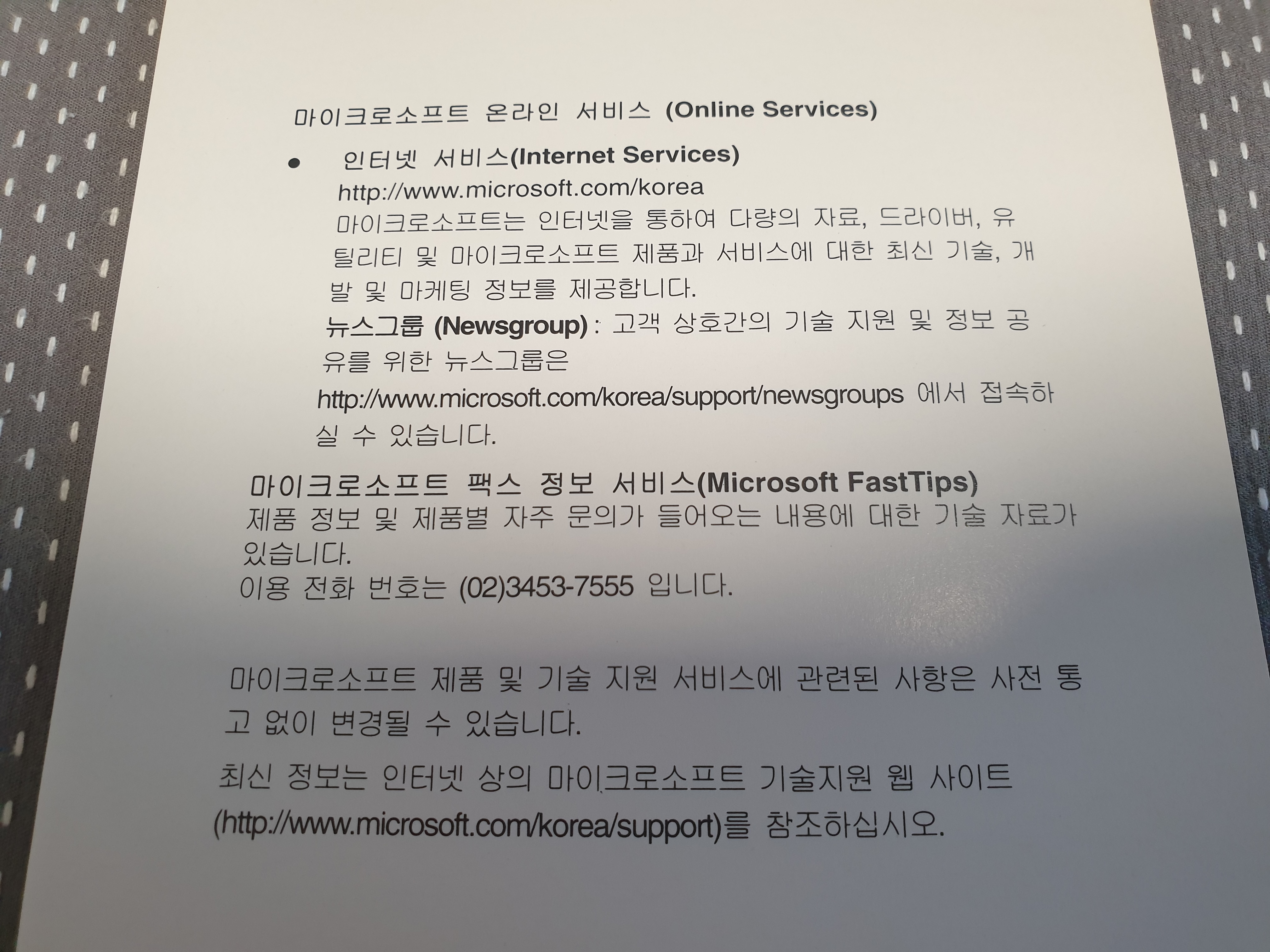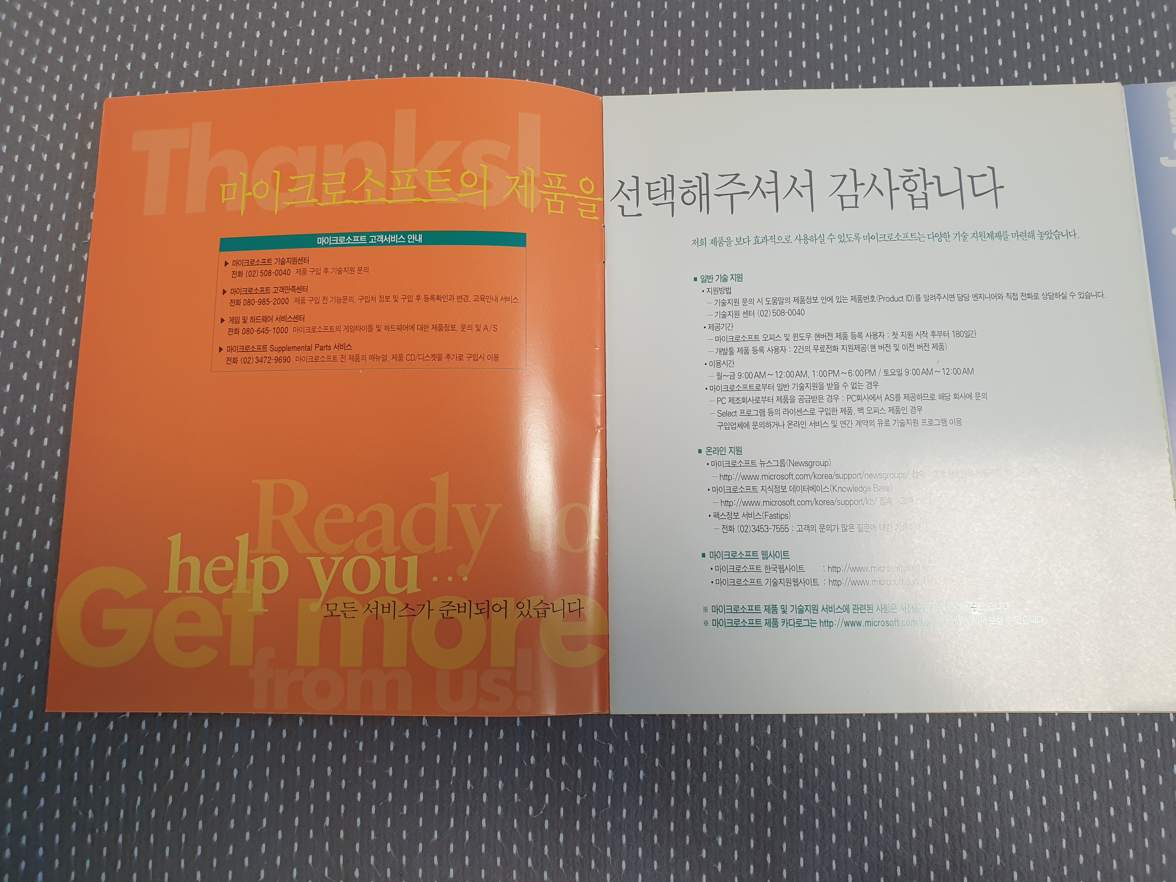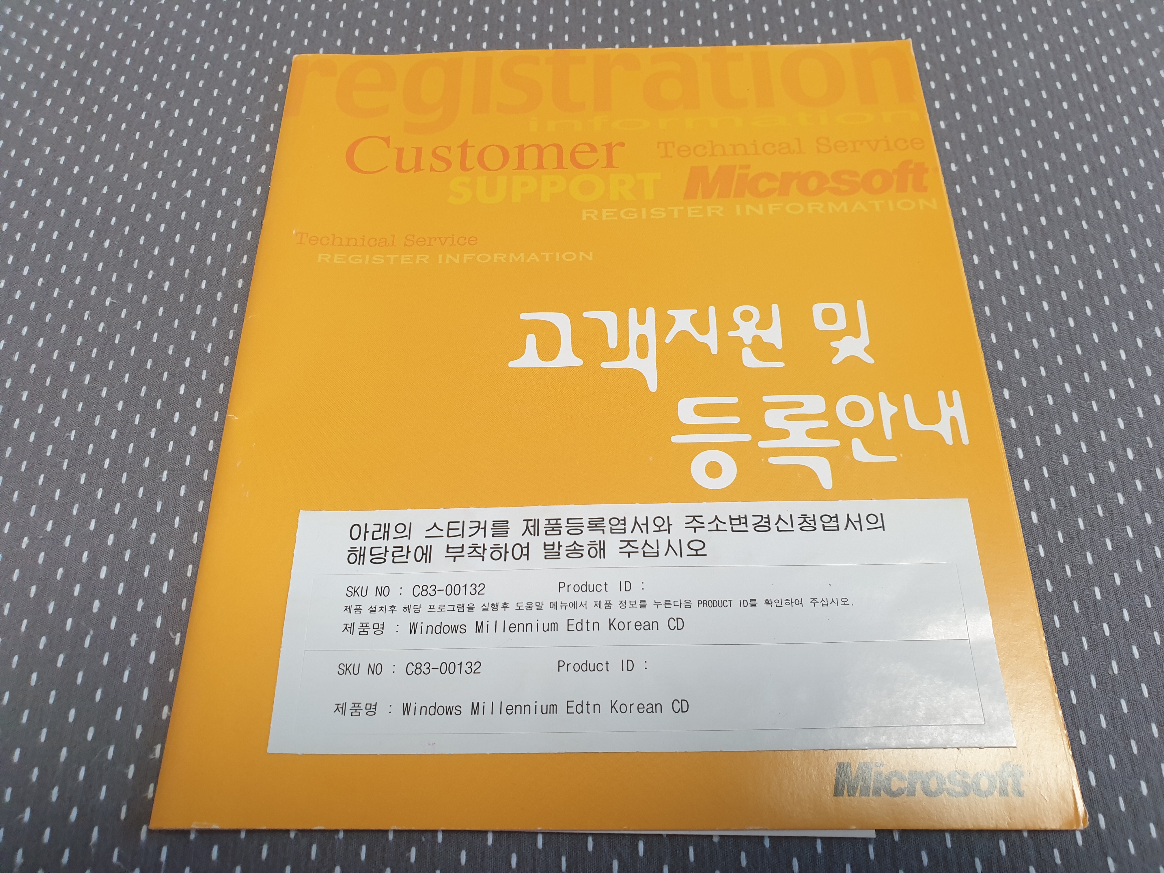 다음은 고객지원 및 등록안내서입니다. 하단의 스티커를 엽서에 붙여서 MS 본사로 보낼 수 있었습니다.