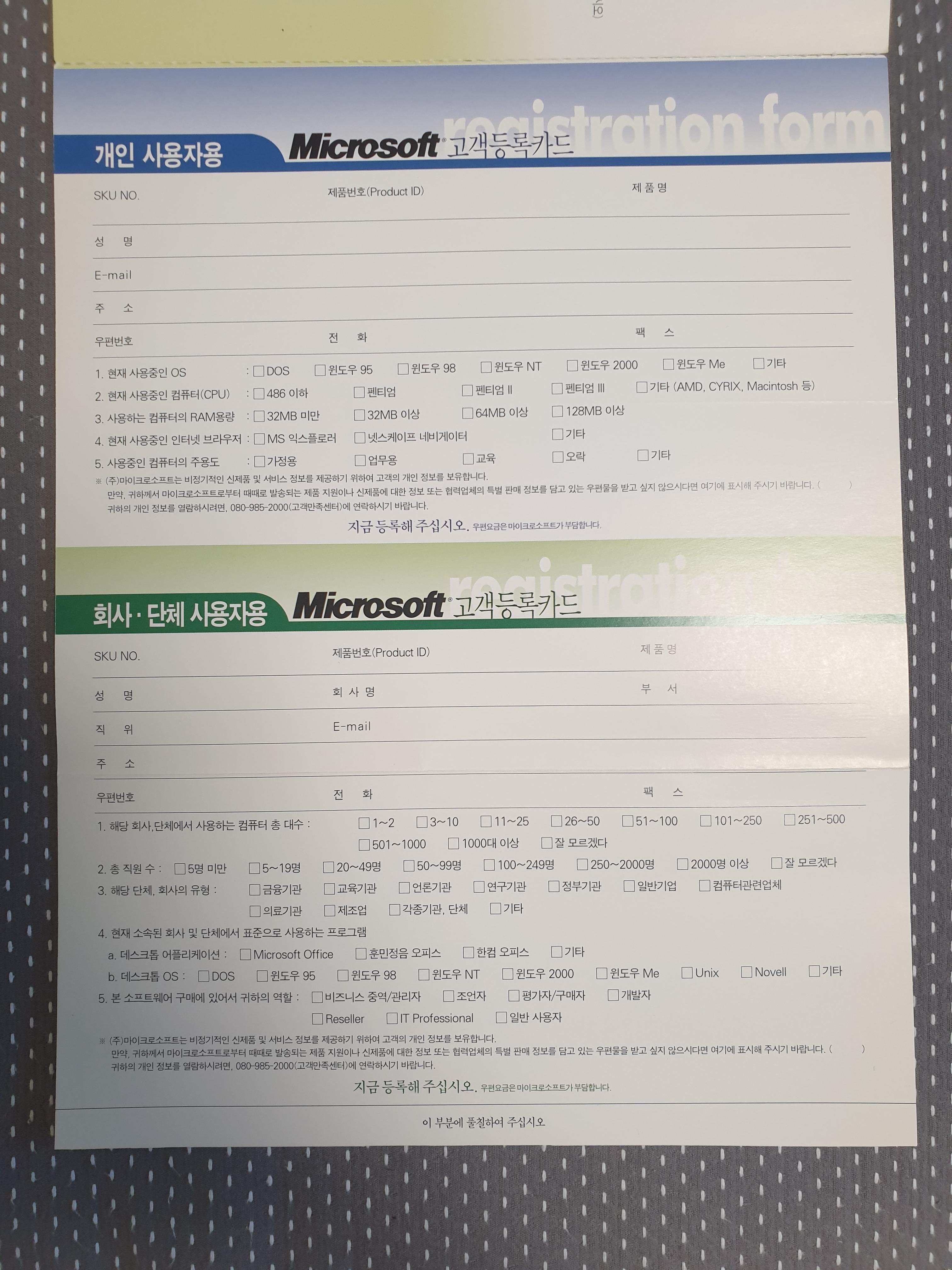이렇게 등록 엽서도 동봉되어 있습니다. 사용자의 기본 정보를 물어보고 있습니다.