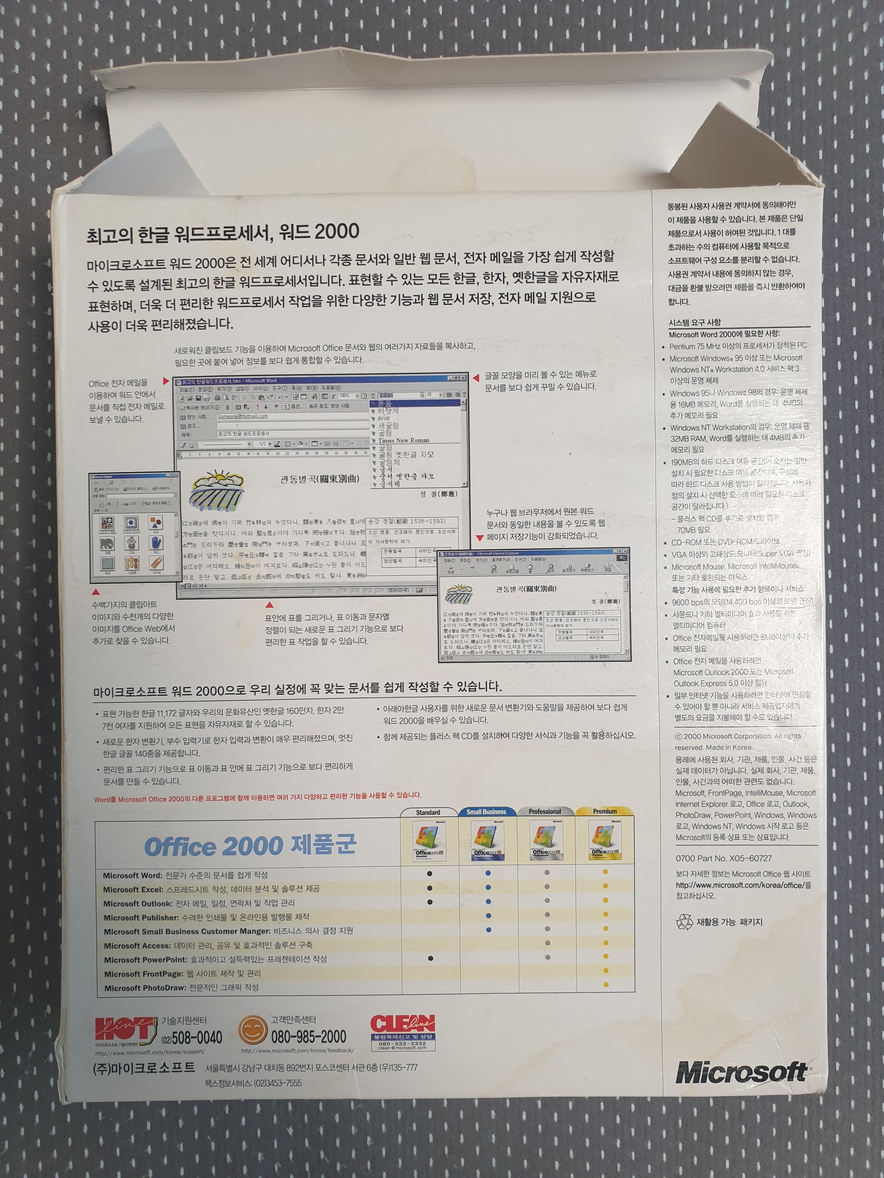 박스 왼쪽 면입니다. 워드 2000 로고와 함께 호환성 로고가 붙어있습니다.