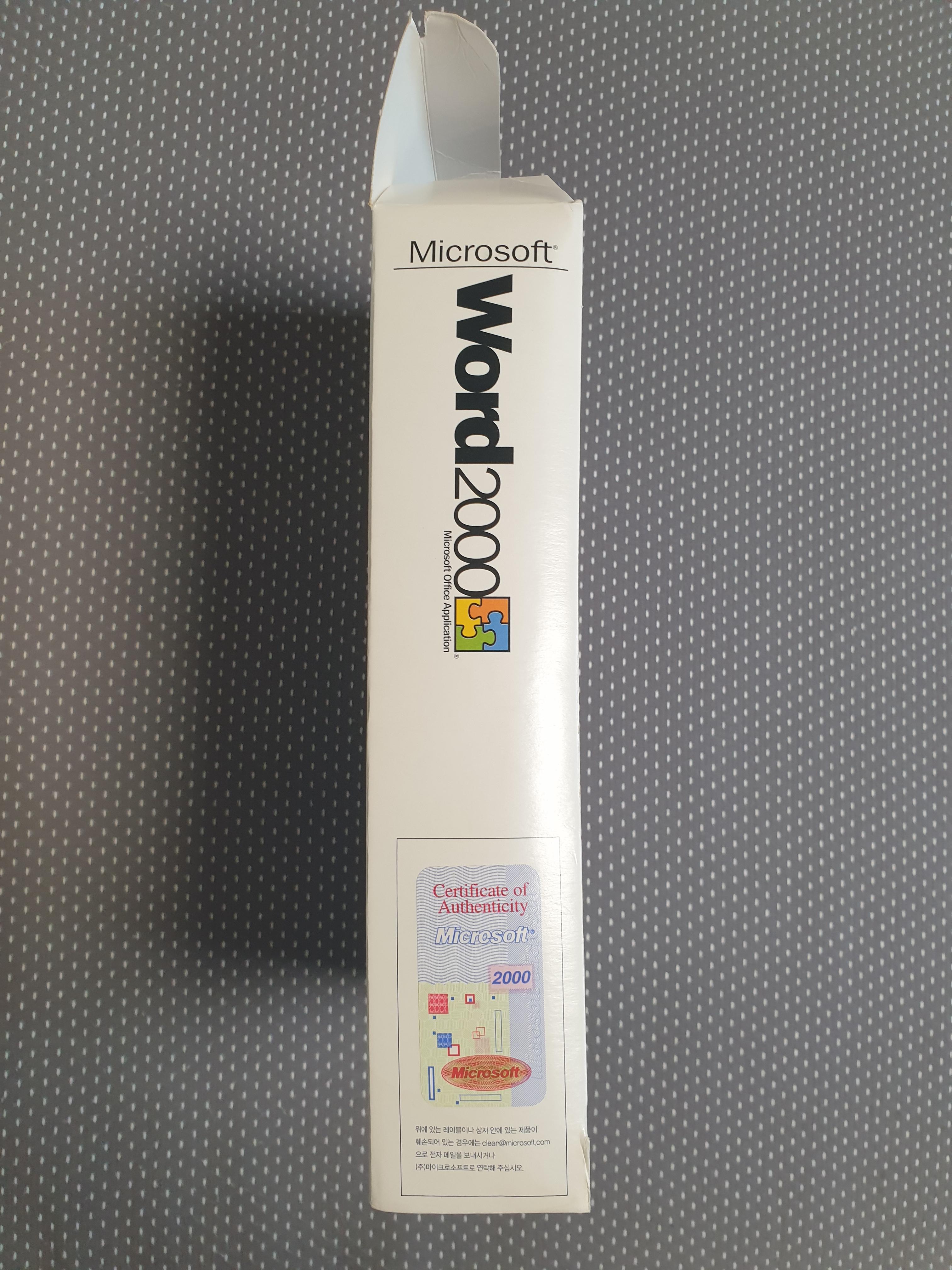 박스 오른쪽 면입니다. 워드 2000 로고와 함께 정품인증 마크가 붙어있습니다.
