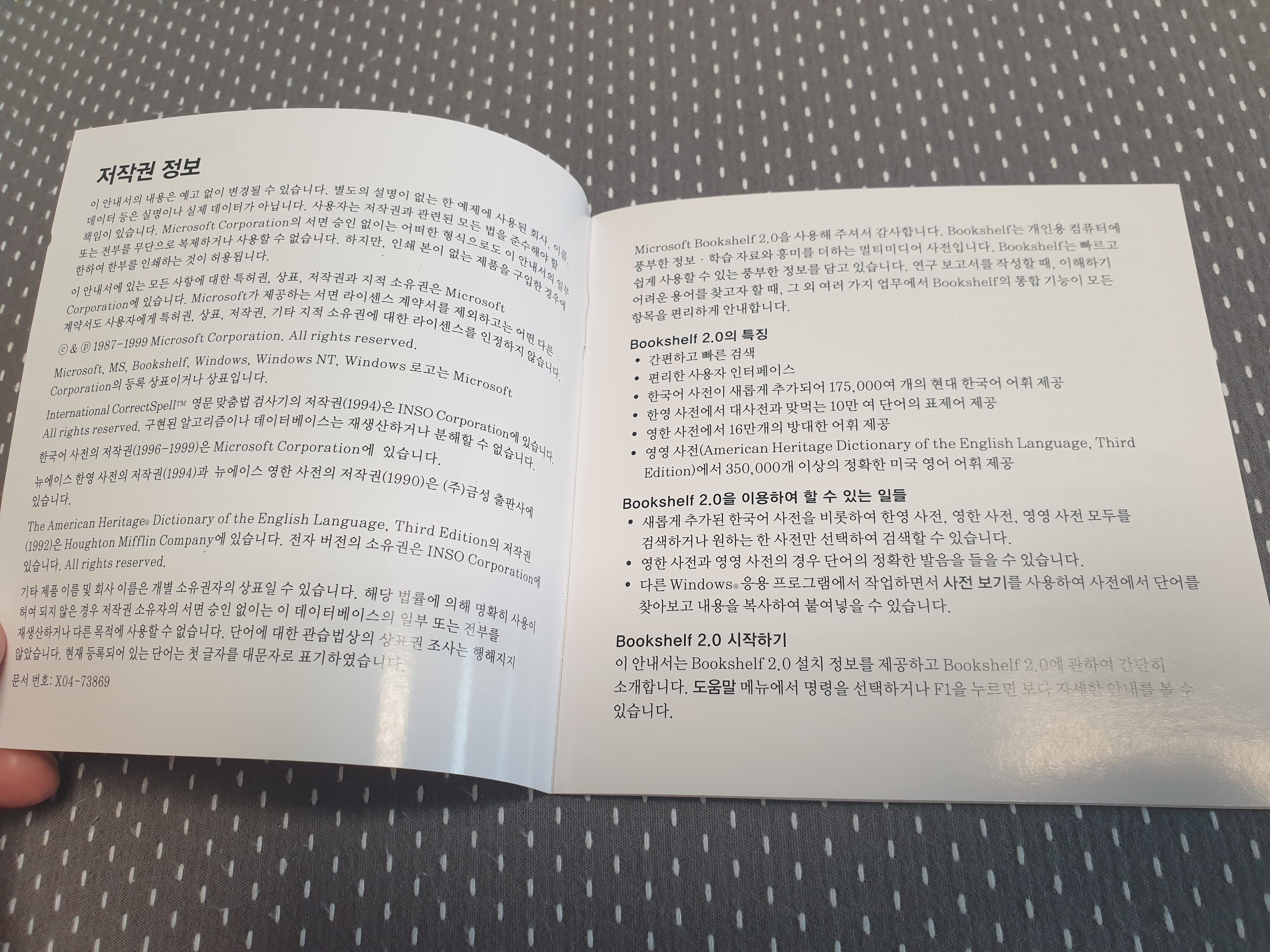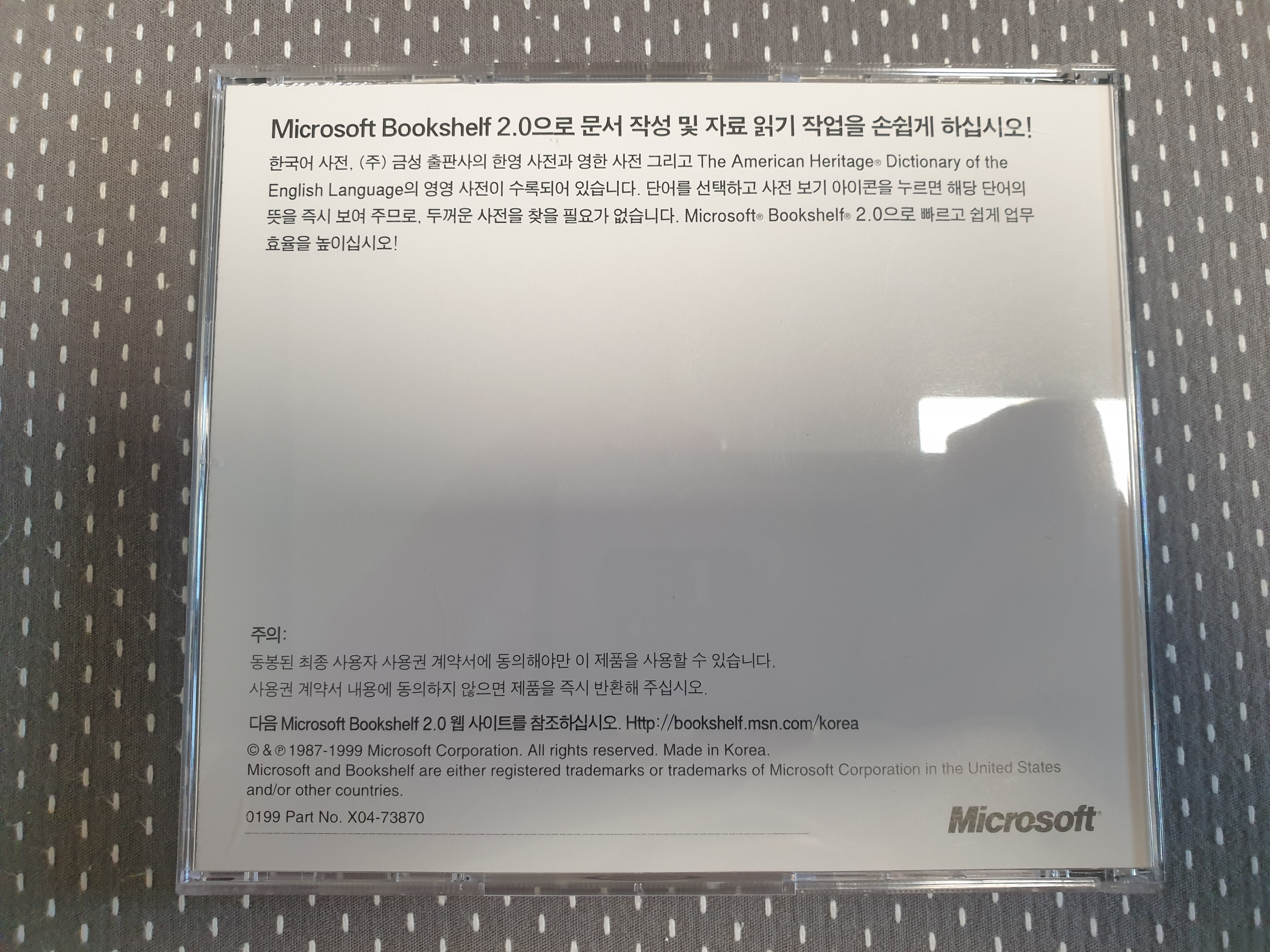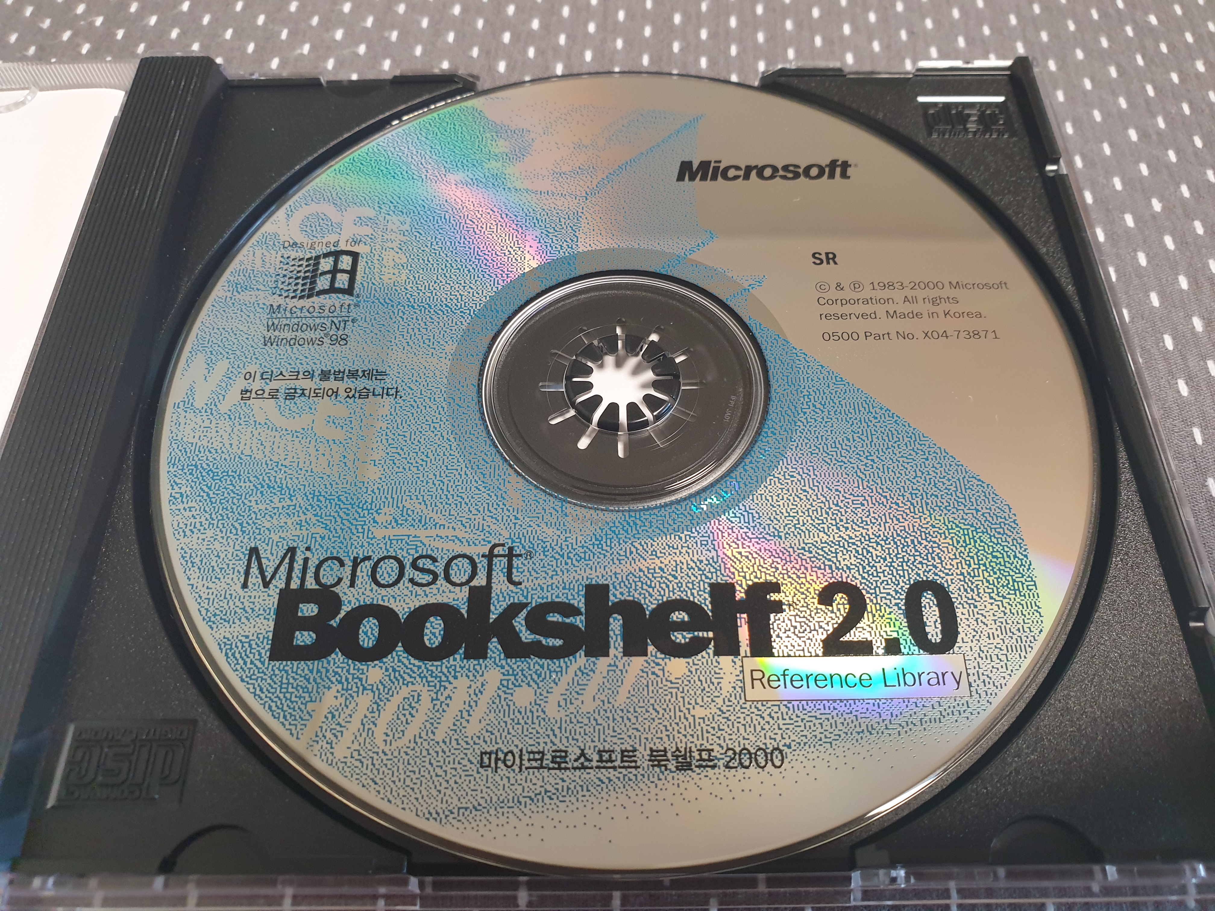 이것은 워드 2000 박스에 포함되어있던 마이크로소프트 북쉘프 2.0 CD입니다. 한국어 사전이 포함되어있다고 하네요.
