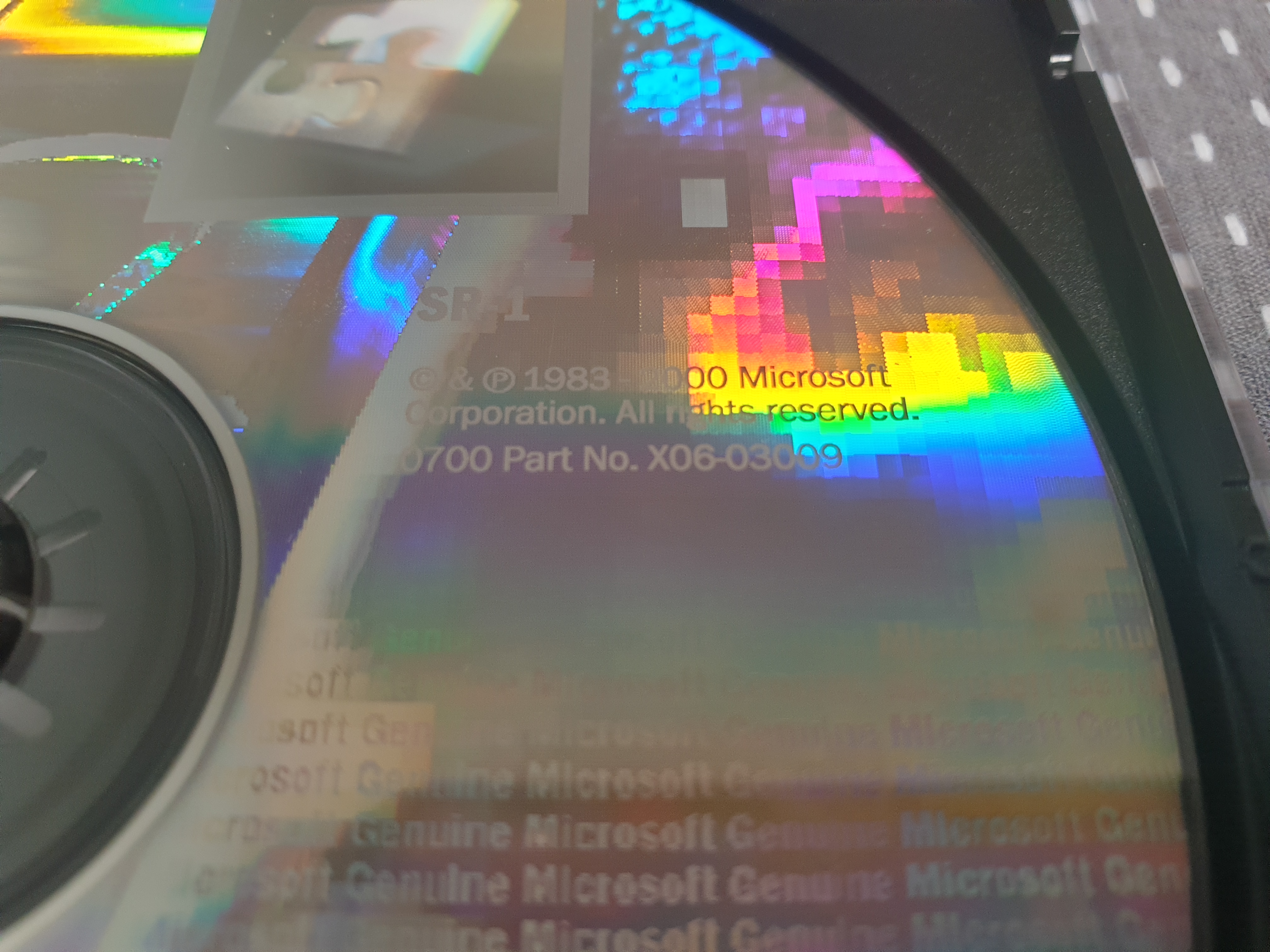 우측 상단을 확대해본 모습입니다. SR-1 버전이며, 카피라이트 문구가 있습니다. 파트 넘버는 X05-40312입니다. CD 라벨명은 MSWORD9입니다.