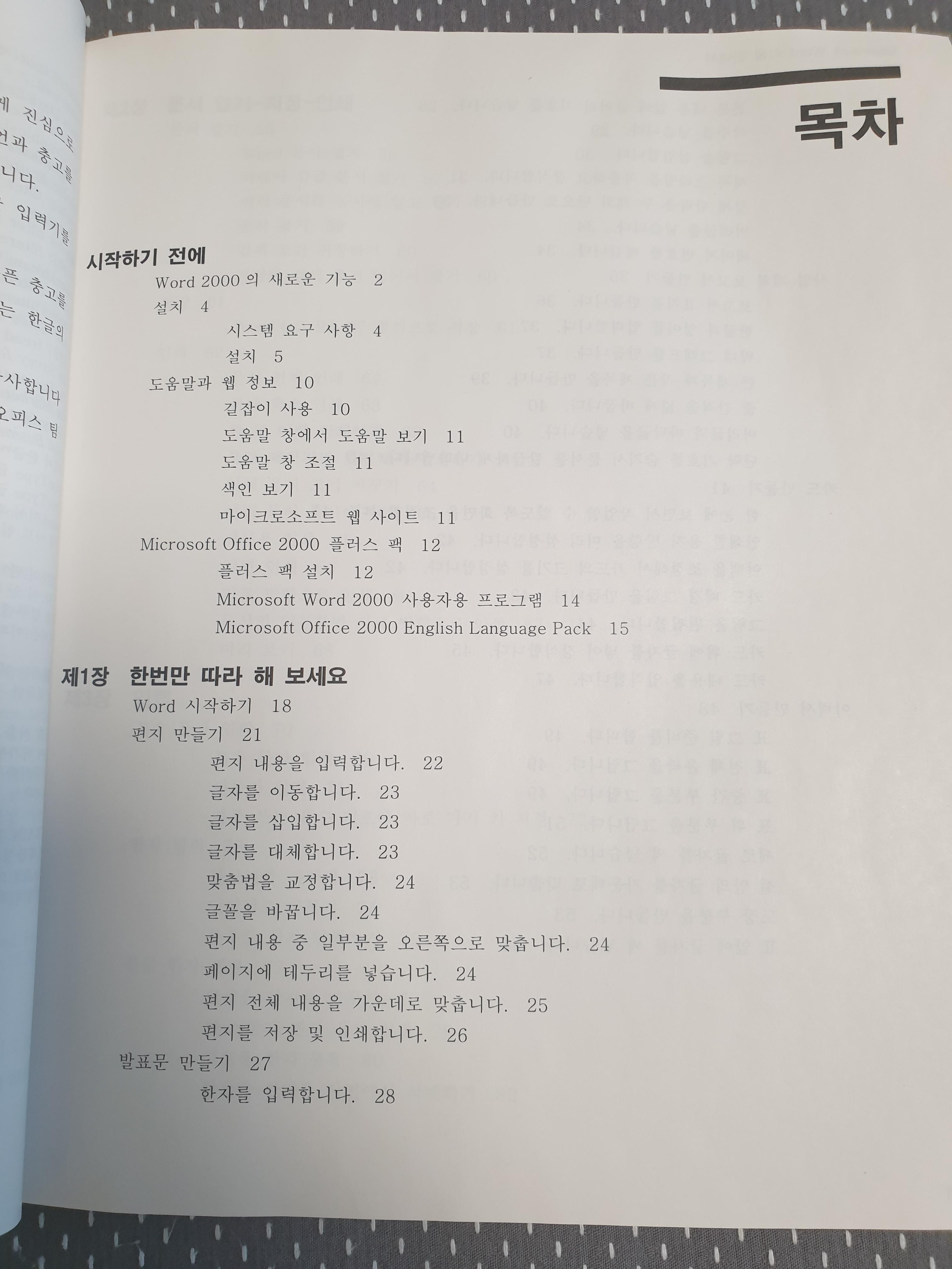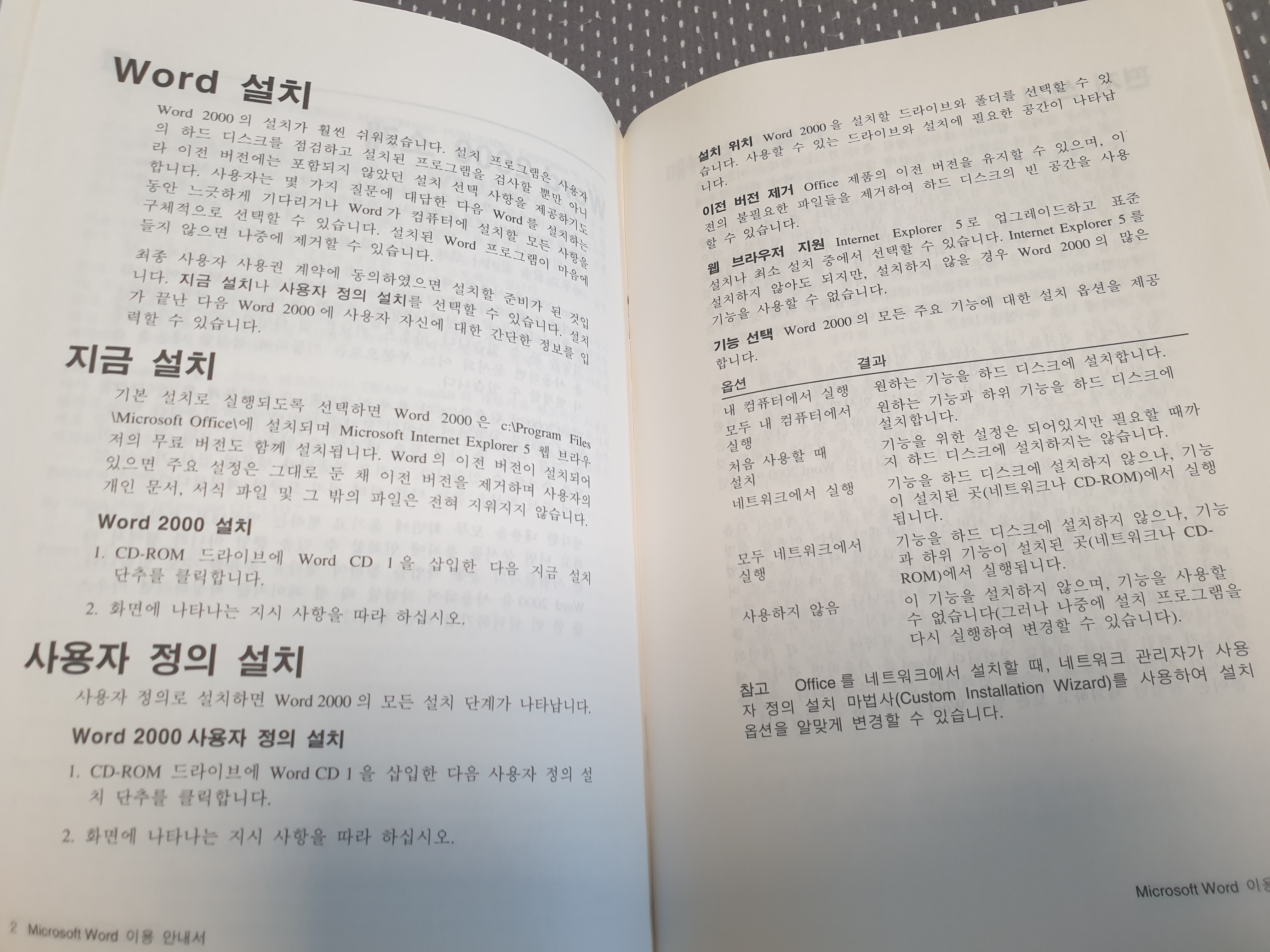 안내서에는 사진과 함께 워드 2000 사용 방법이 적혀있습니다.