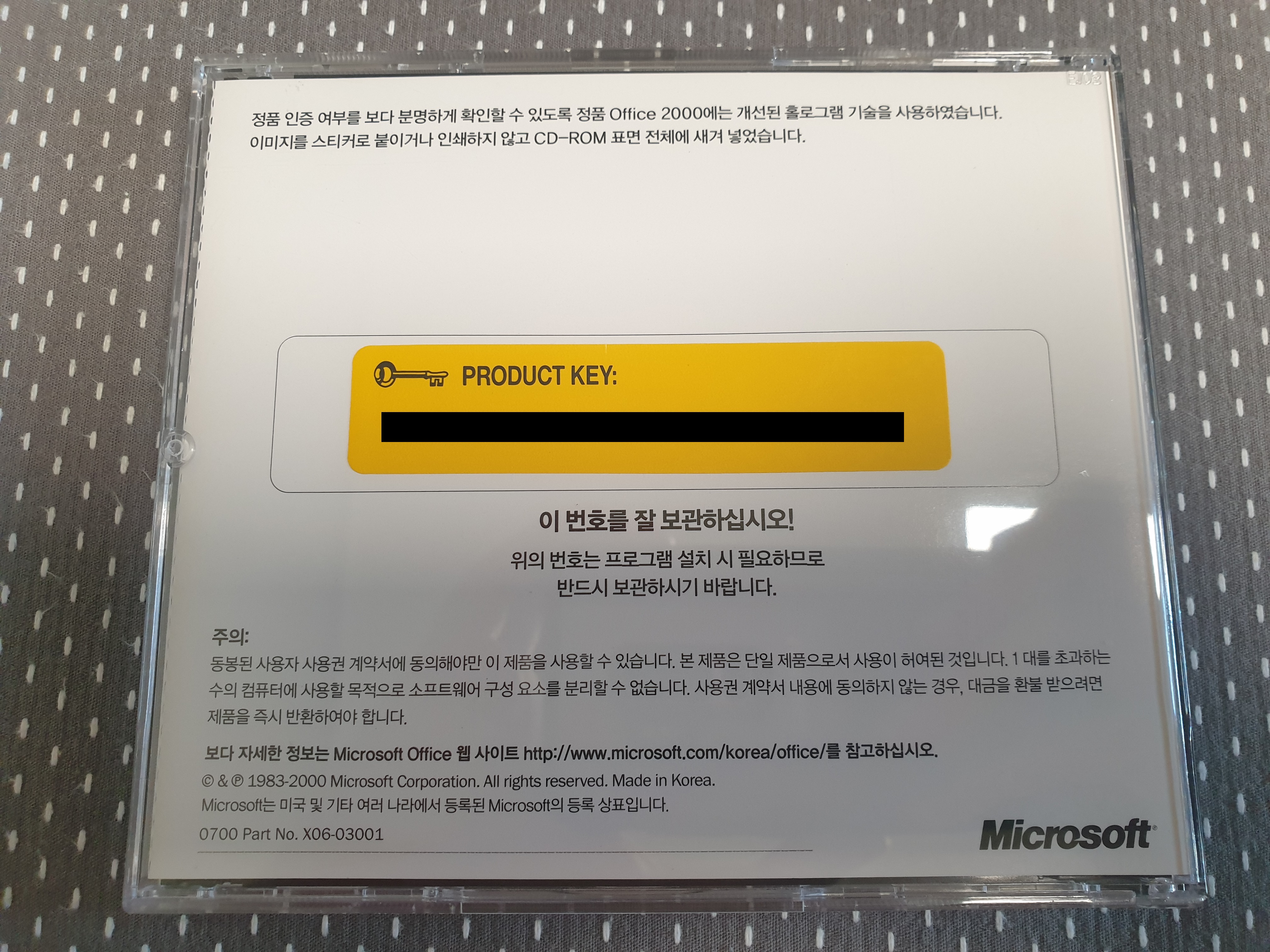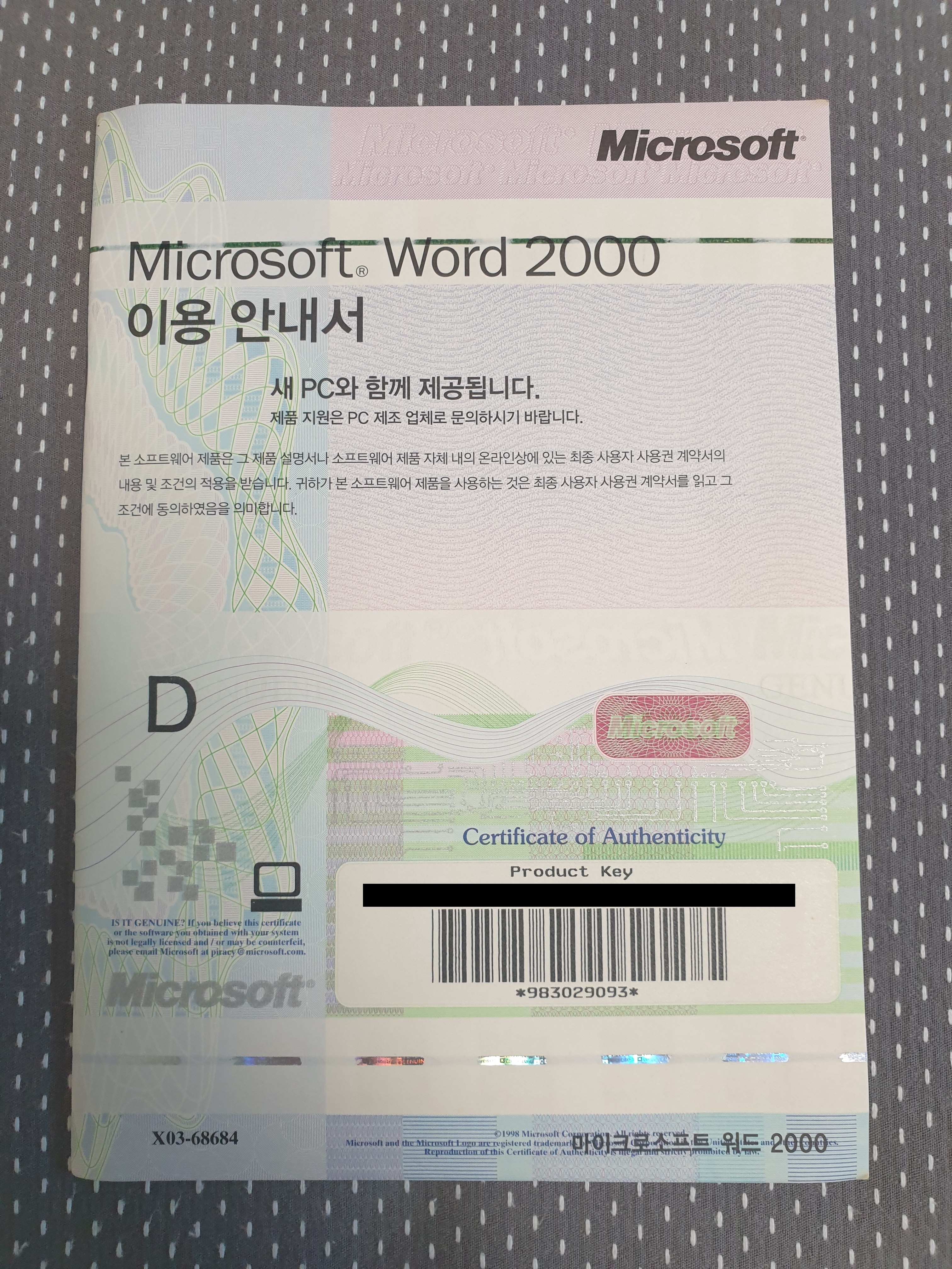 제가 가지고 있는 워드 2000 CD는 총 2장으로, DSP 단품과 풀박스에 들어있던 리테일 버전 이렇게 두 개입니다. 모두 중고장터에서 구입했습니다.