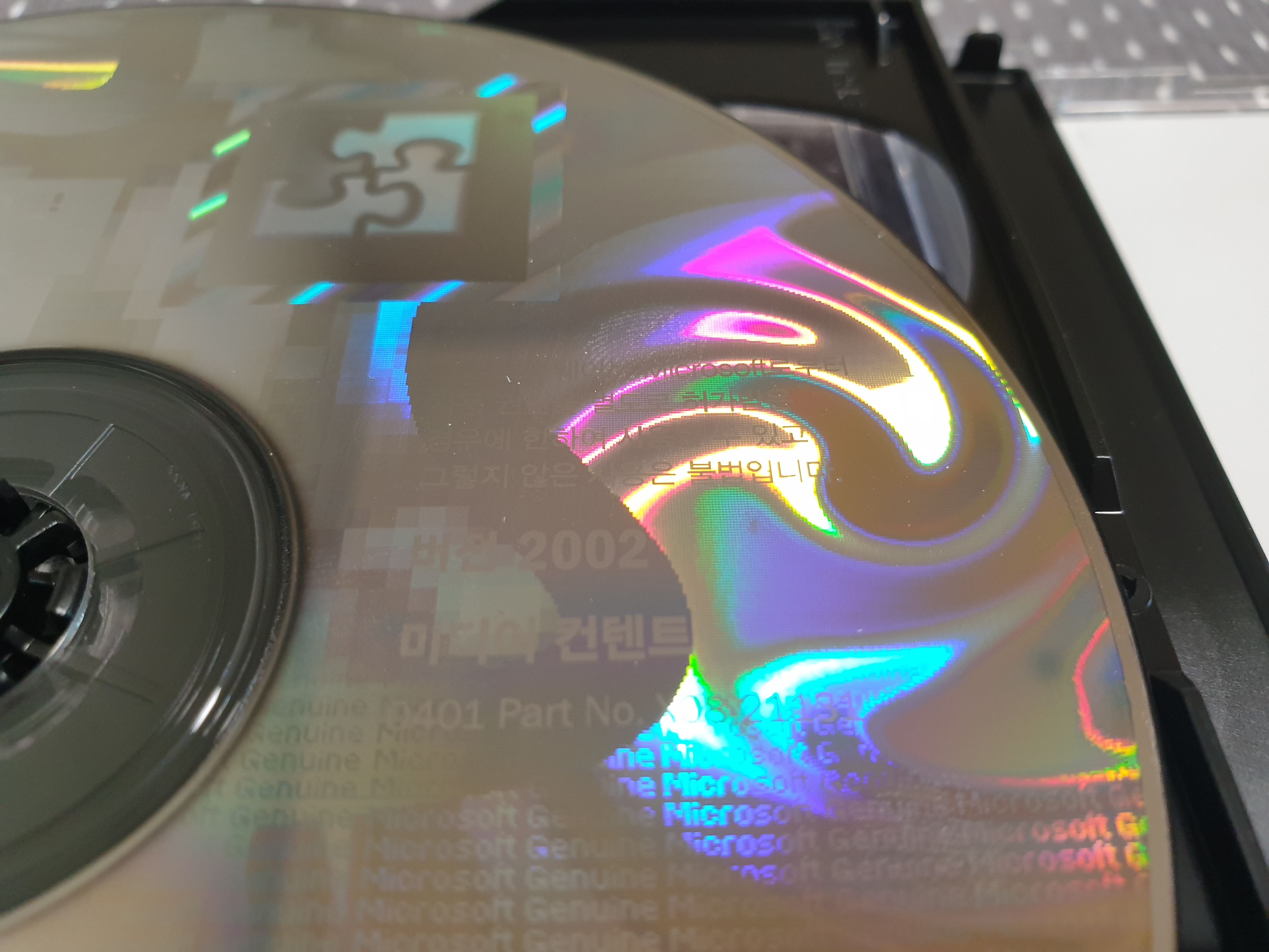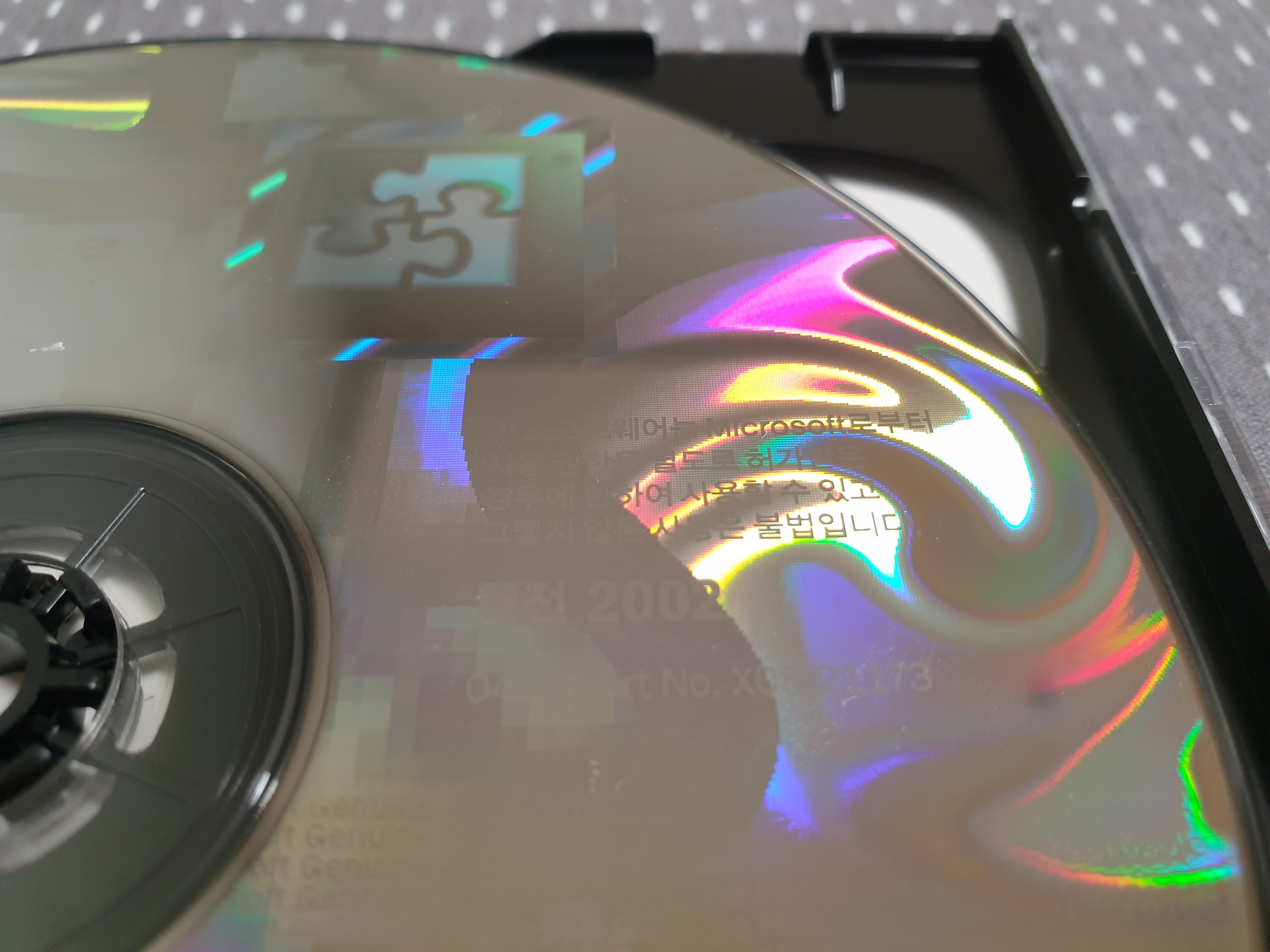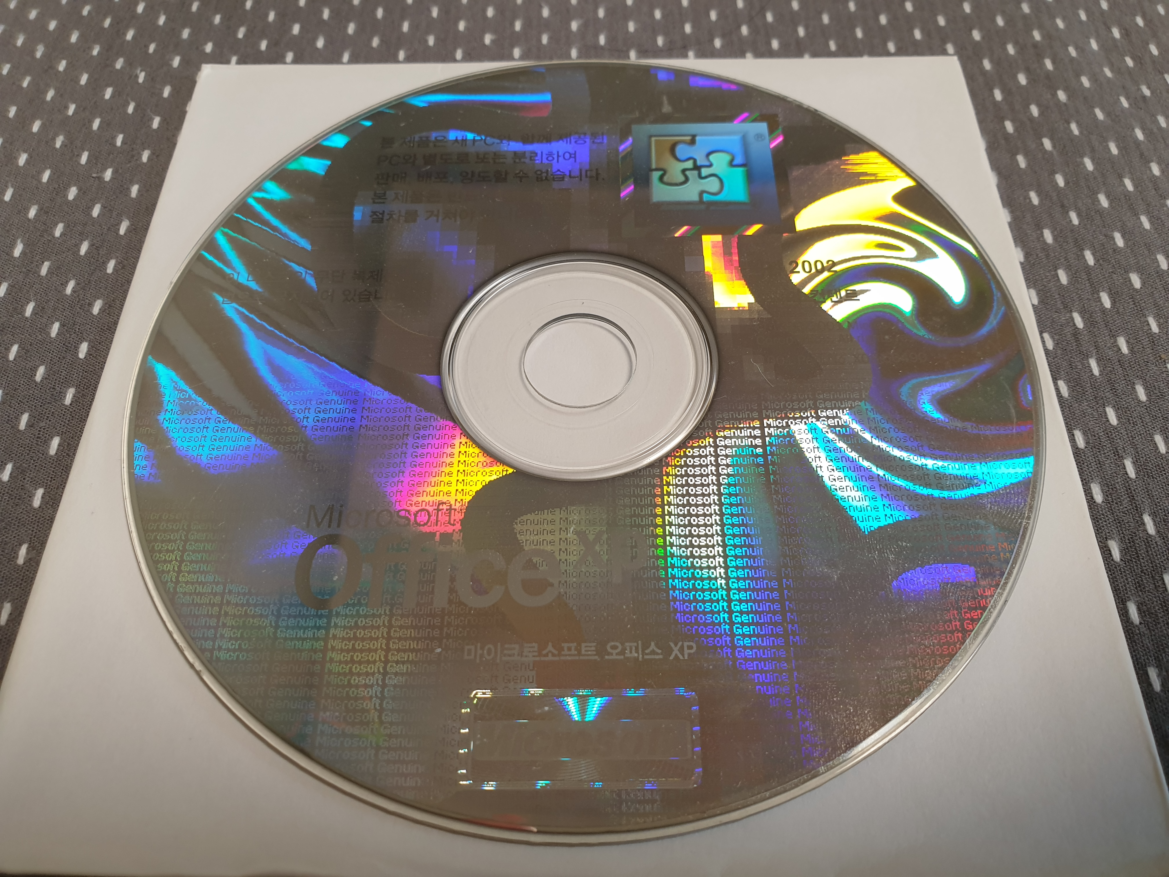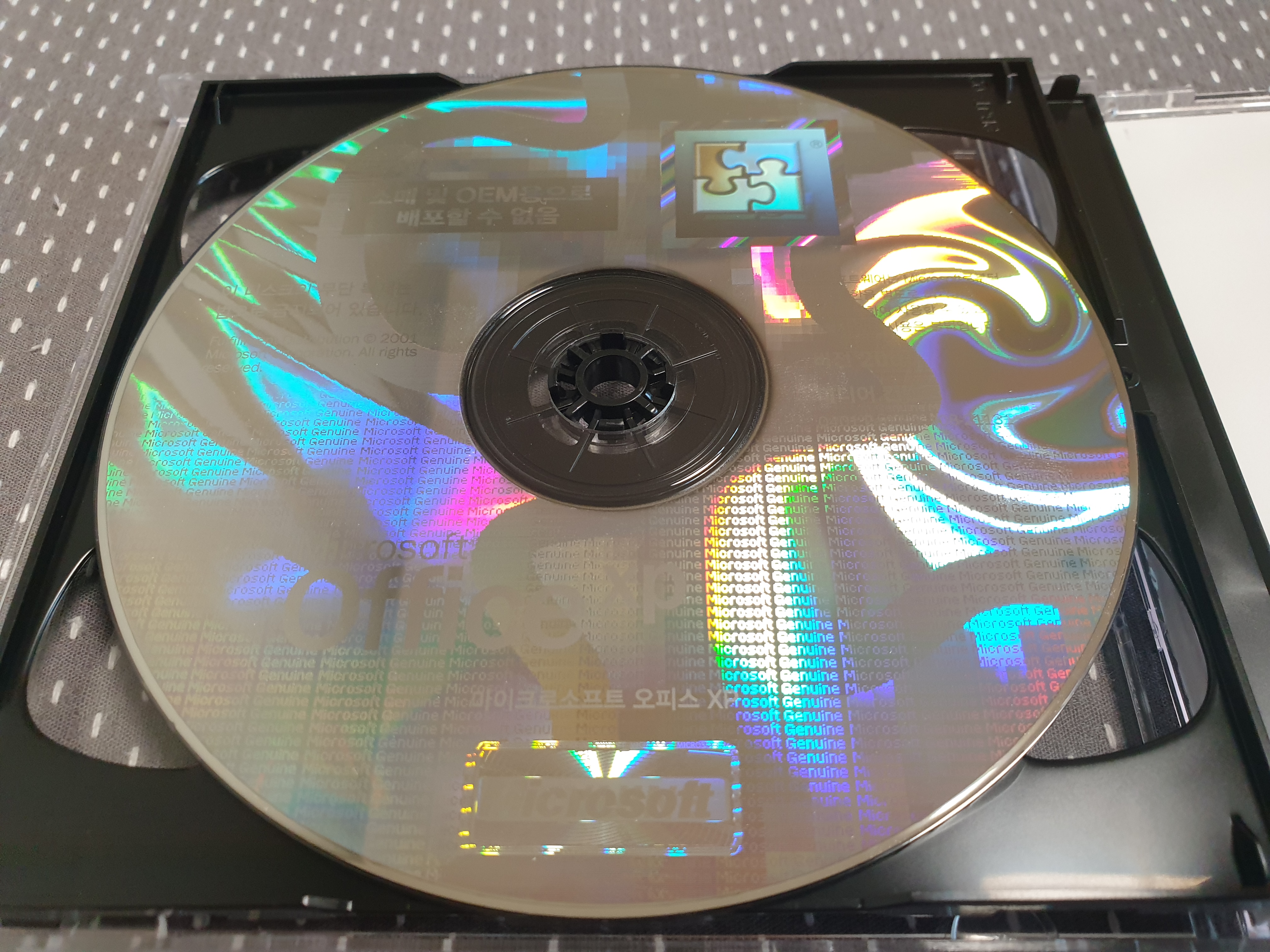 먼저 오피스 XP CD의 모습입니다. 상단에 소매 및 OEM용으로 배포할 수 없음이라고 적혀있습니다. 프로페셔널 버전입니다. 홀로그램이 영롱하죠.