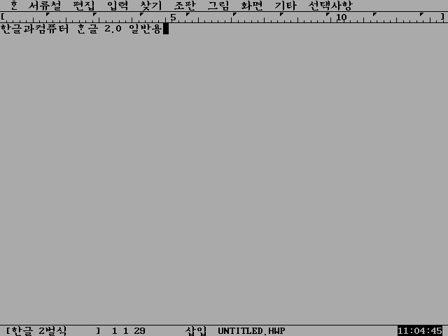 한글 2.0의 모습입니다. 우선 화면이 파란색에서 회색으로 바뀌었습니다. 칙칙하긴 하지만 눈은 덜 아프겠군요.
