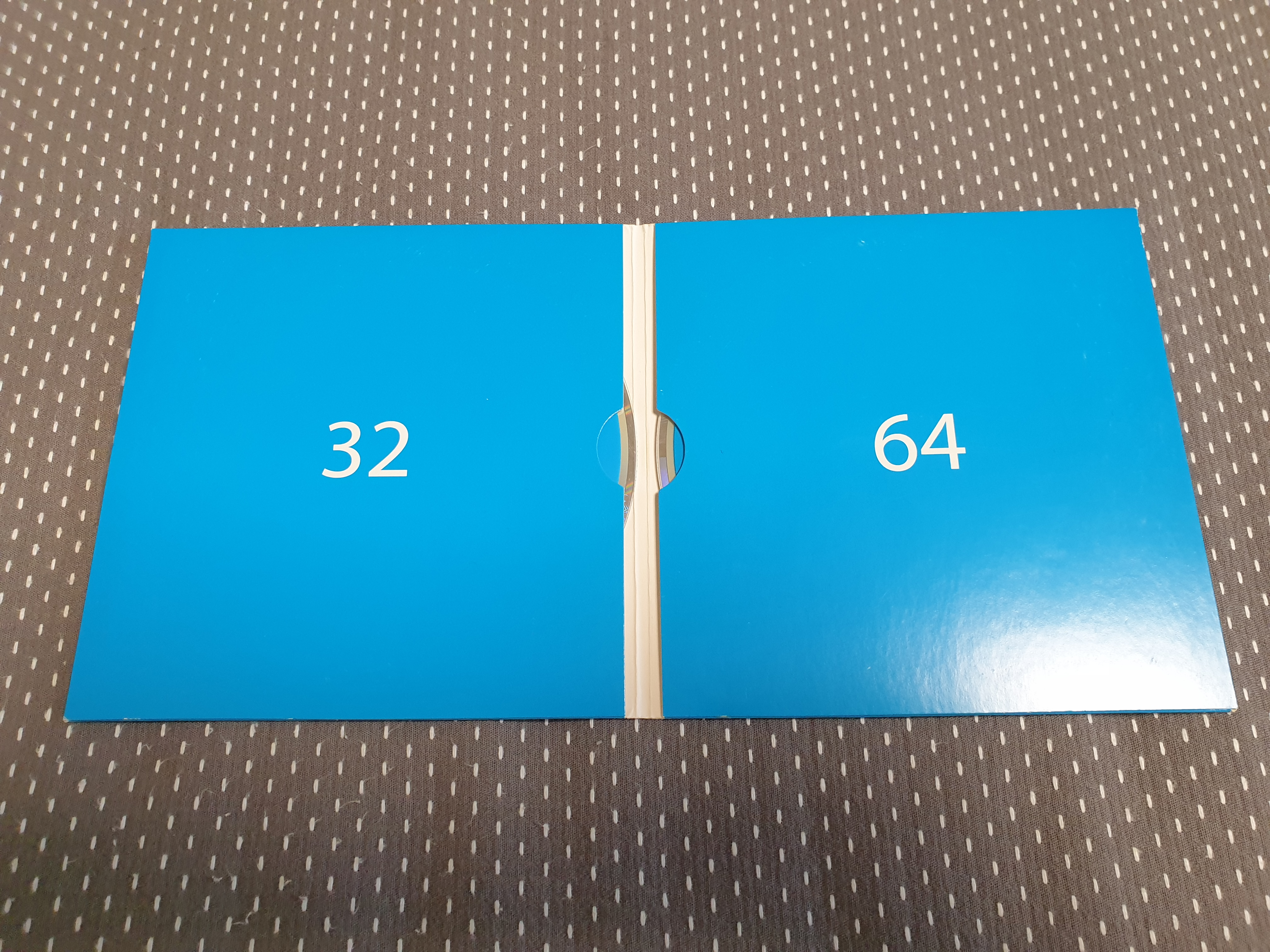 케이스를 펼쳐본 모습입니다. 숫자가 쓰여있는 대로 왼쪽에는 32비트 DVD가, 오른쪽에는 64비트 DVD가 들어있습니다.