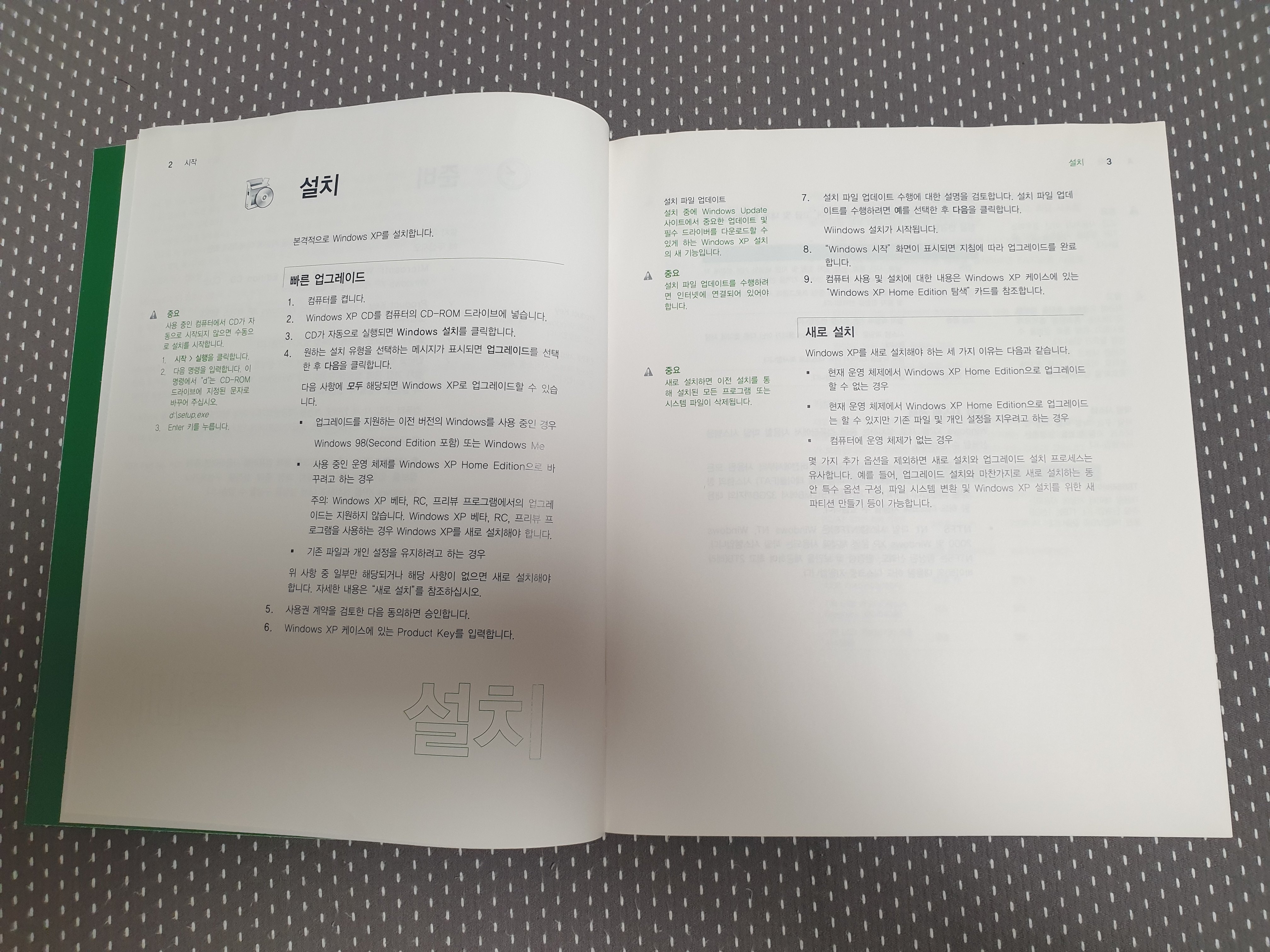 이렇게 윈도우 XP 책자를 소개해드렸습니다. 이렇게 책자를 소개하는 게시글을 따로 작성하면서 든 생각이, 과거에는 프로그램을 구입하면 묵직한 박스 패키지 안에 실물 CD를 포함하여 이런 다양한 책자들과 같은 구성품이 많이 들어있어서 읽을거리가 많아 좋았던 기억이 납니다. 그런데 요즘엔 프로그램을 구입하면 바로 인터넷에서 파일로 다운로드 해버리니 이런 손맛 가득한 감성이 없어서 좀 아쉽네요. 발전해가는 기술을 나무랄 수는 없지만 말입니다.
