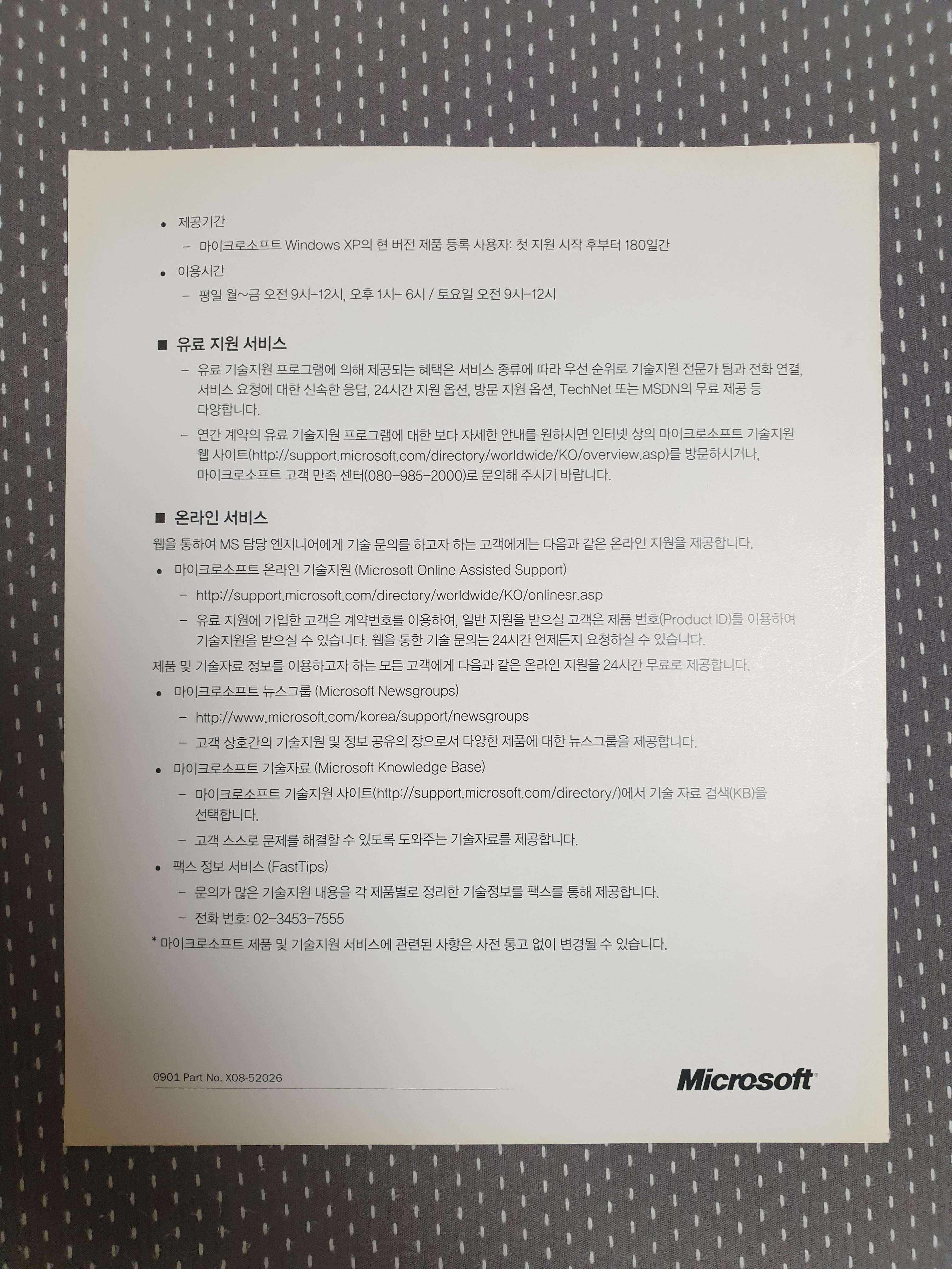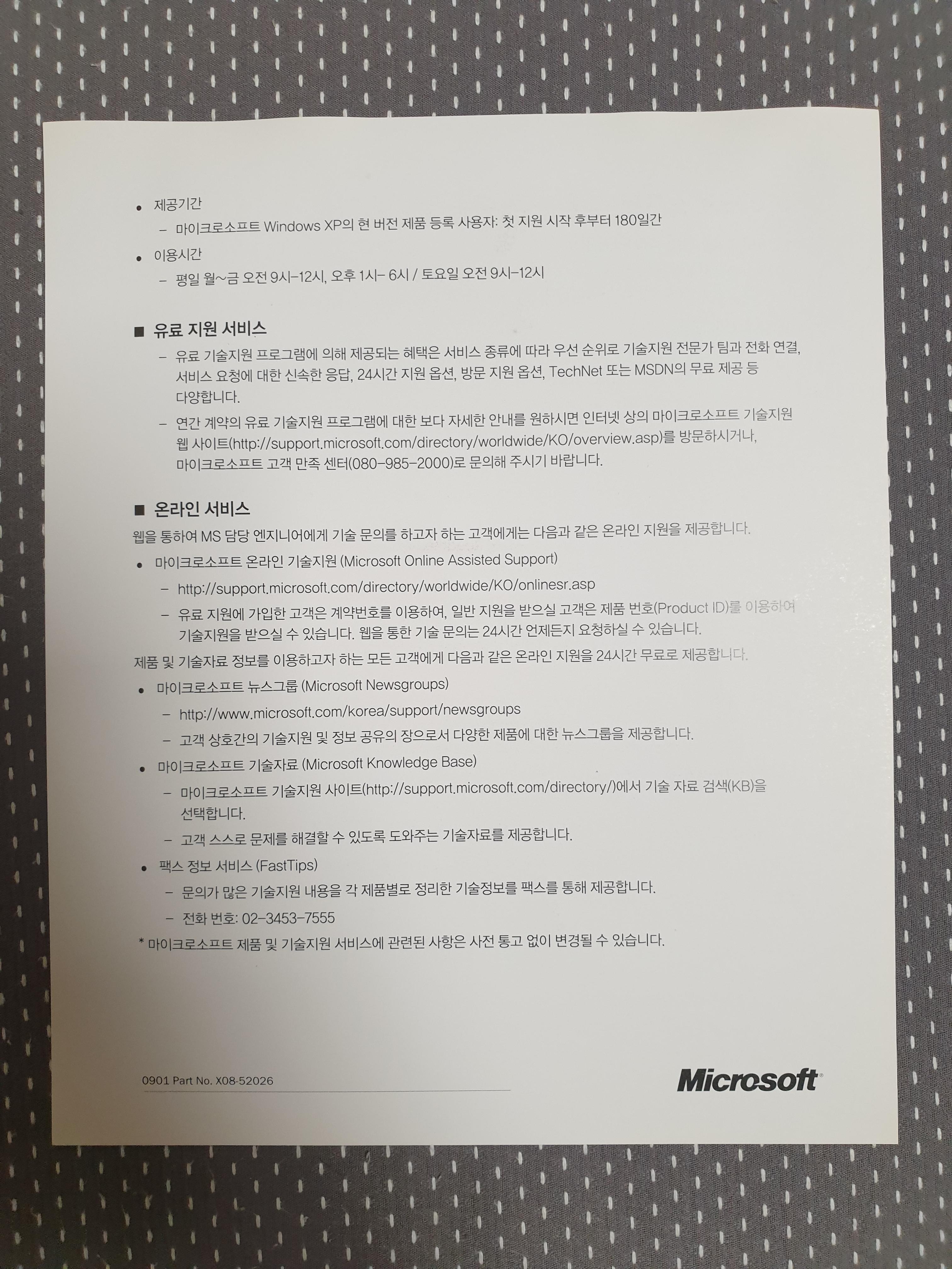 뒷면에는 유료 지원 서비스 및 온라인 서비스에 대해 적혀있습니다. 이때만 해도 마이크로소프트가 이렇게 친절했는데 말이죠...