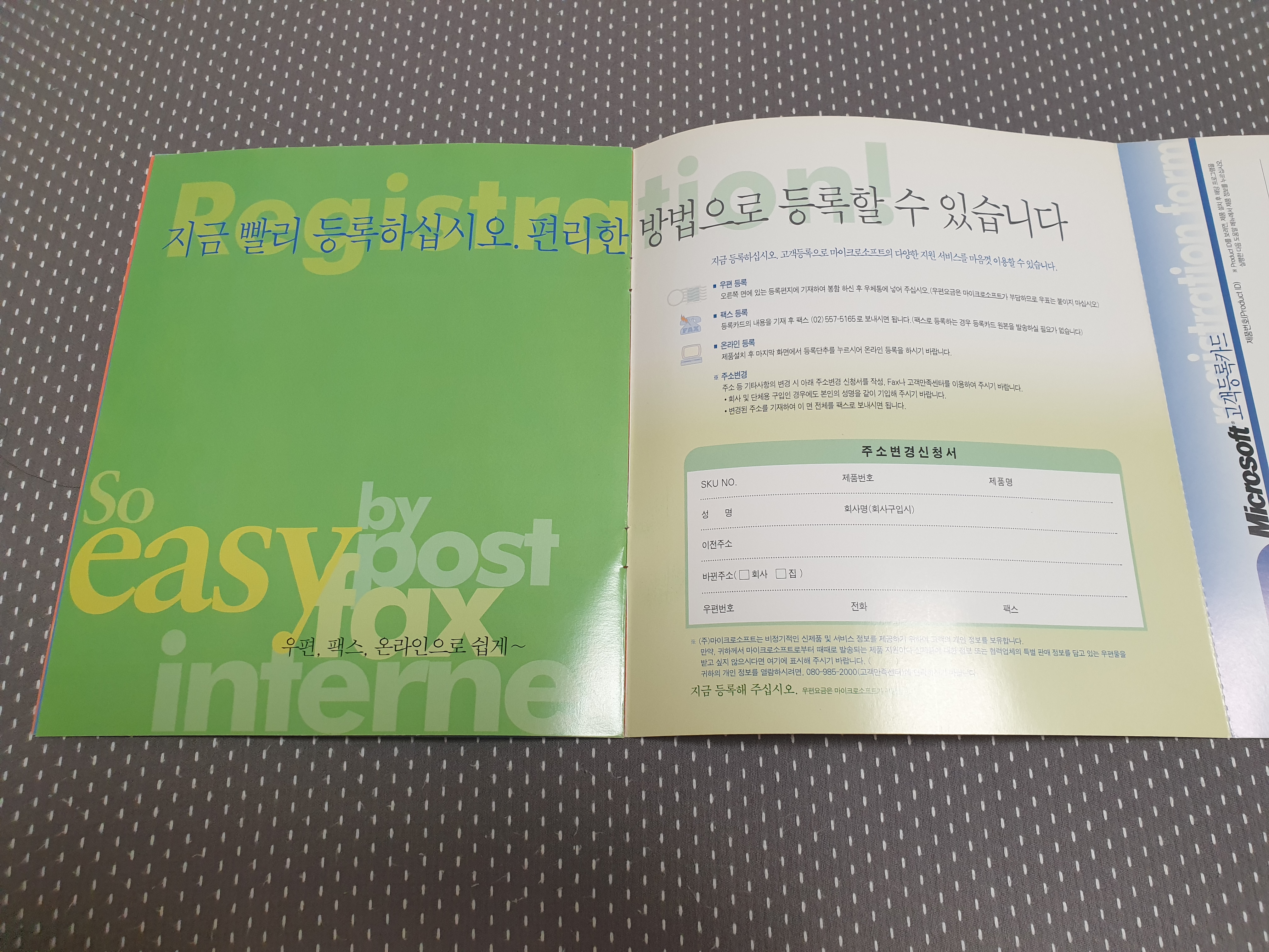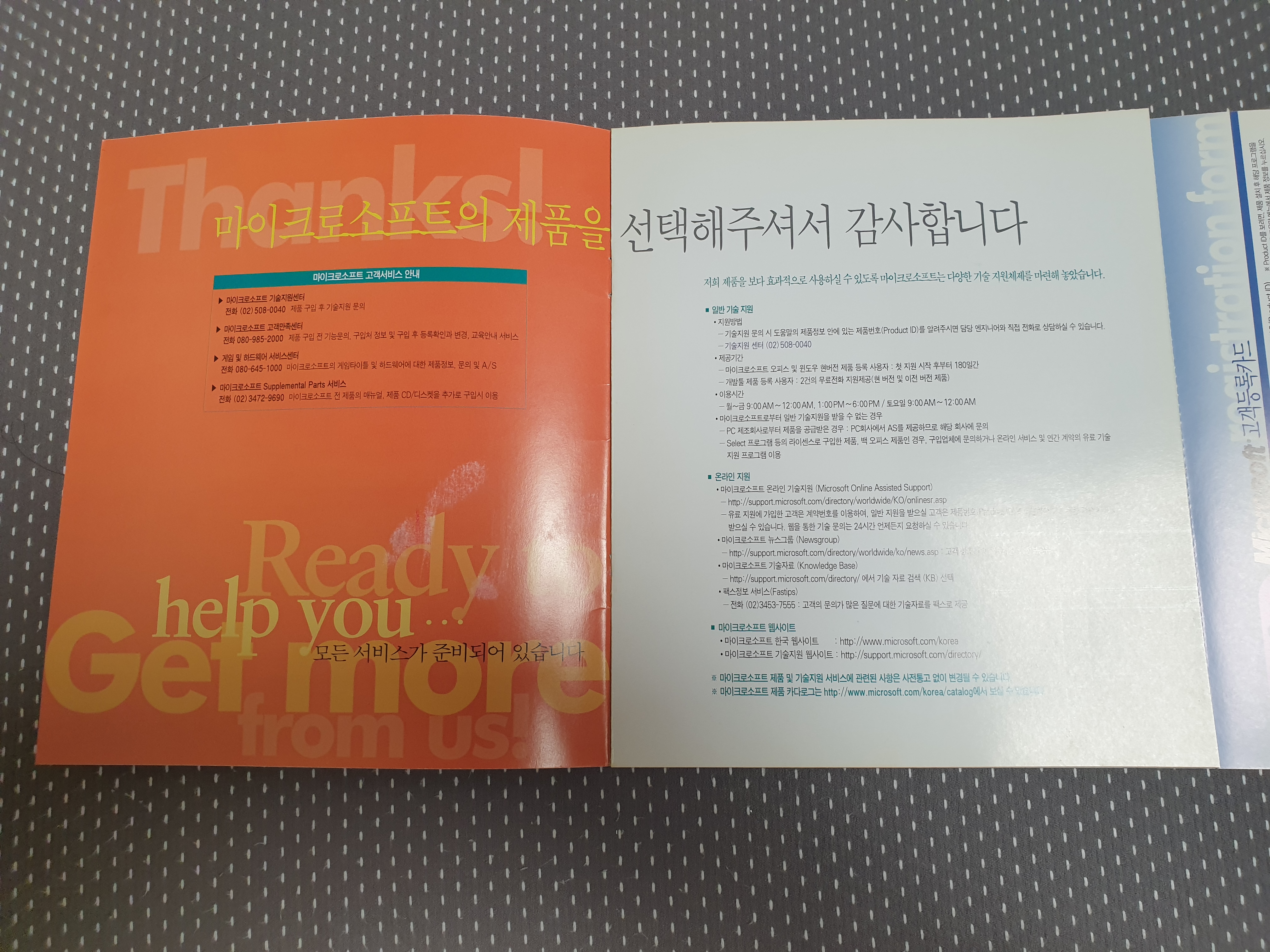 고객지원 및 등록 안내 책자입니다. 이 책자는 윈도우 2000과 Me에도 포함되어 있죠.