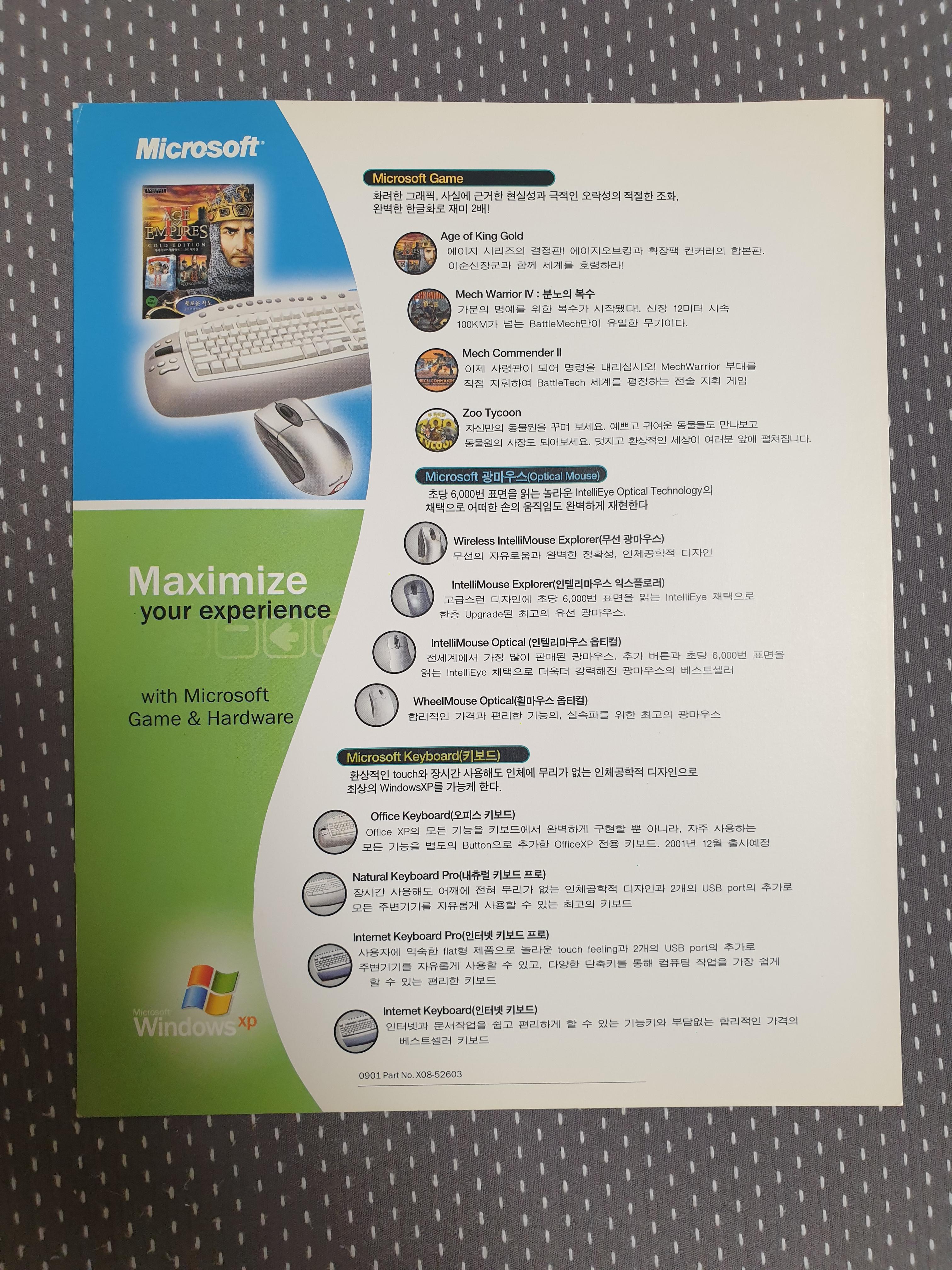 뒷면에 보면 마이크로소프트에서 제작한 게임과 마우스, 키보드를 홍보하는 내용이 적혀있습니다. 저는 모르는 게임들이군요.