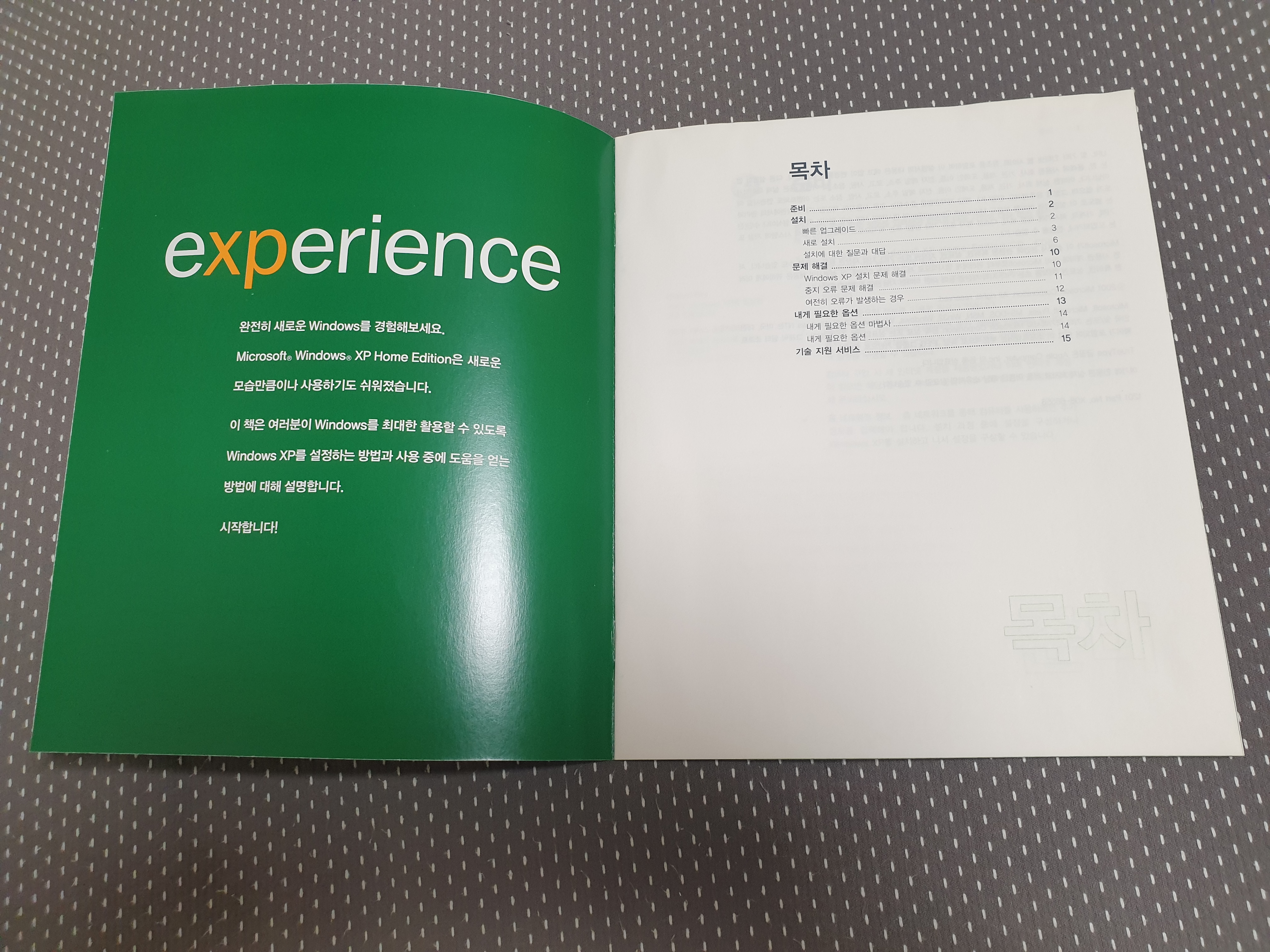 목차 부분입니다. 아실 분들은 다 아시겠지만 윈도우 XP의 'XP'는 '경험'을 뜻하는 영단어 'experience'에서 따왔습니다.
