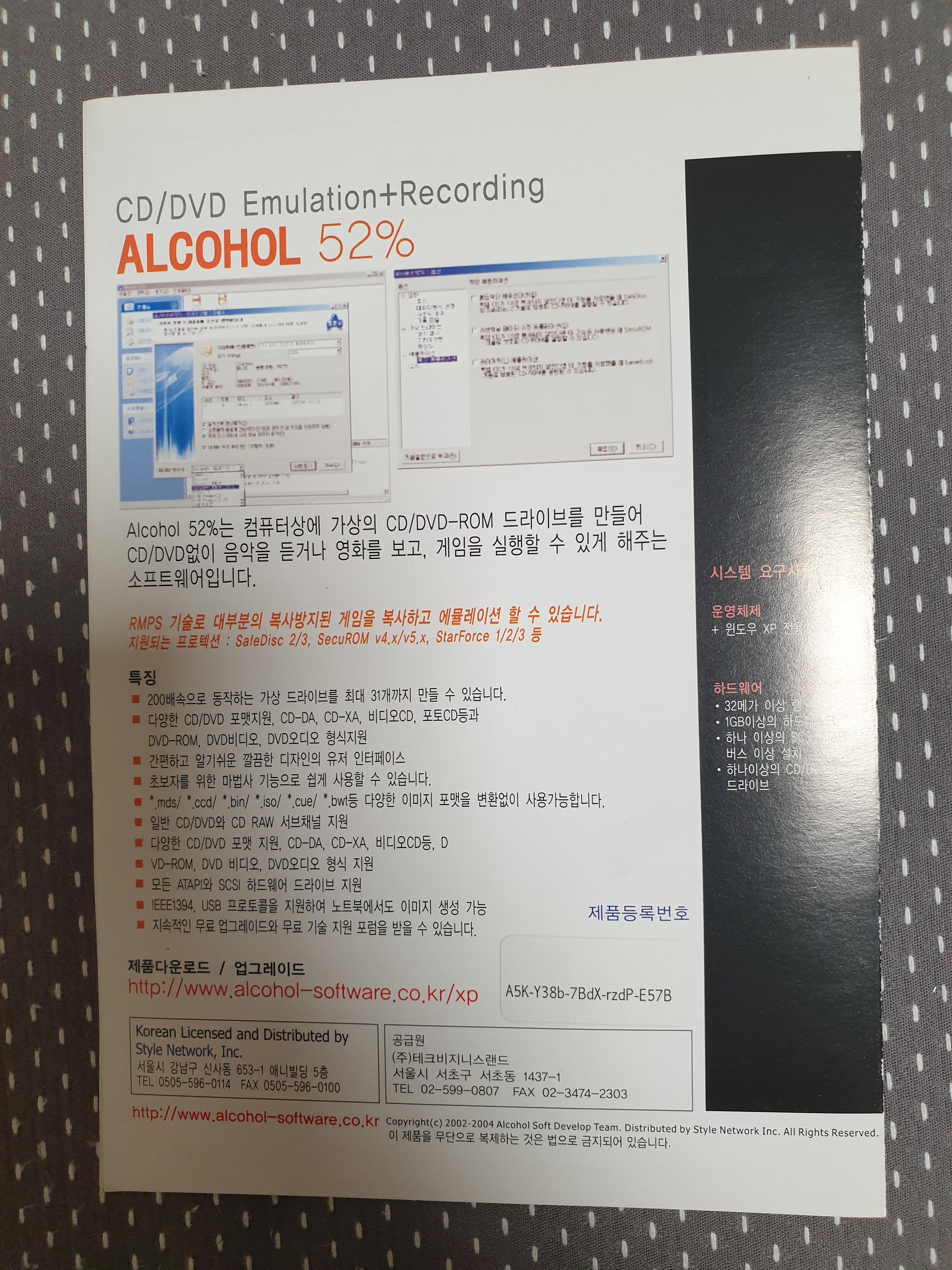 마지막으로 CD/DVD 관련 작업을 할 수 있는 프로그램인 알코올을 소개하는 책자도 들어있습니다. 한글 윈도우 XP 전용이라고 적혀있네요.