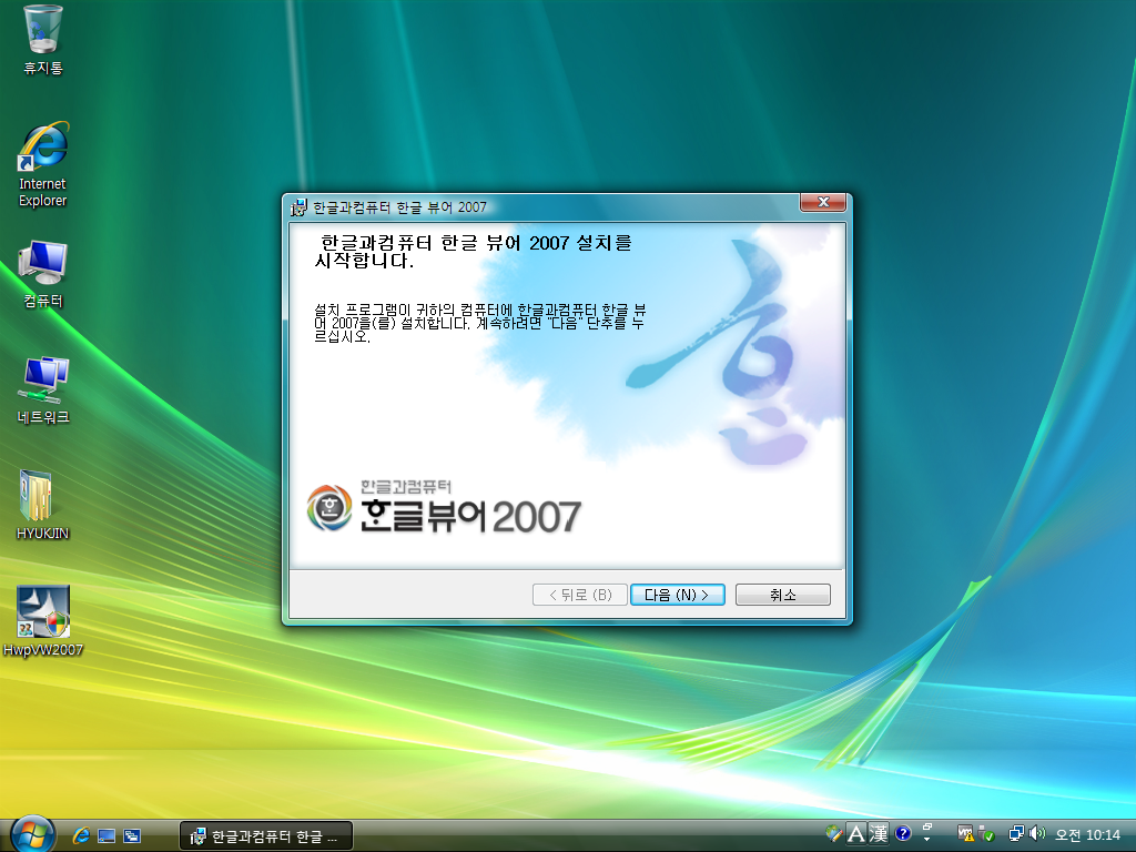 한글과컴퓨터 한글 뷰어 2007입니다. 한글 hwp 문서를 열어볼 수만 있고, 작성하는 기능은 없습니다. 보기 전용 프로그램입니다. 빌드 넘버는 7.0.4.338입니다. 16.5MB 설치 파일입니다.