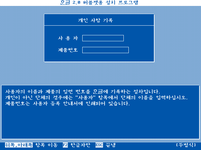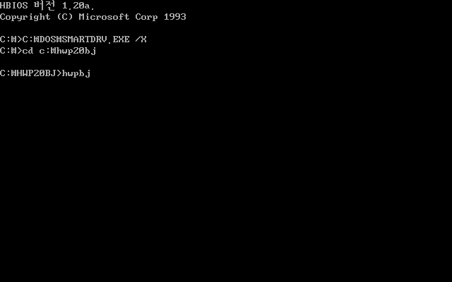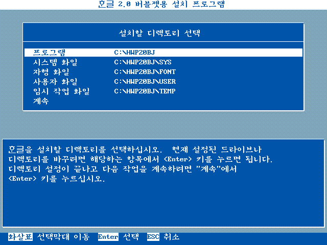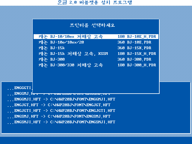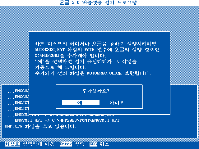 한글 2.0 버블젯용 설치가 끝났습니다. 도스로 나갑니다.