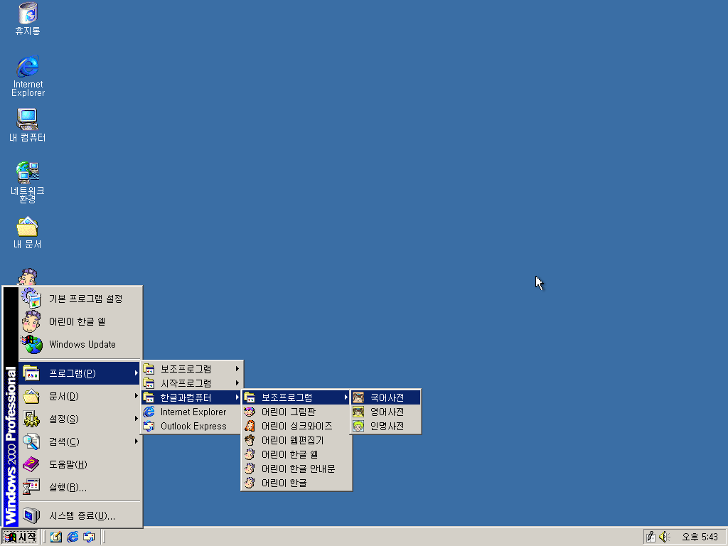 먼저 어린이 한글 쉘을 실행해보겠습니다.
