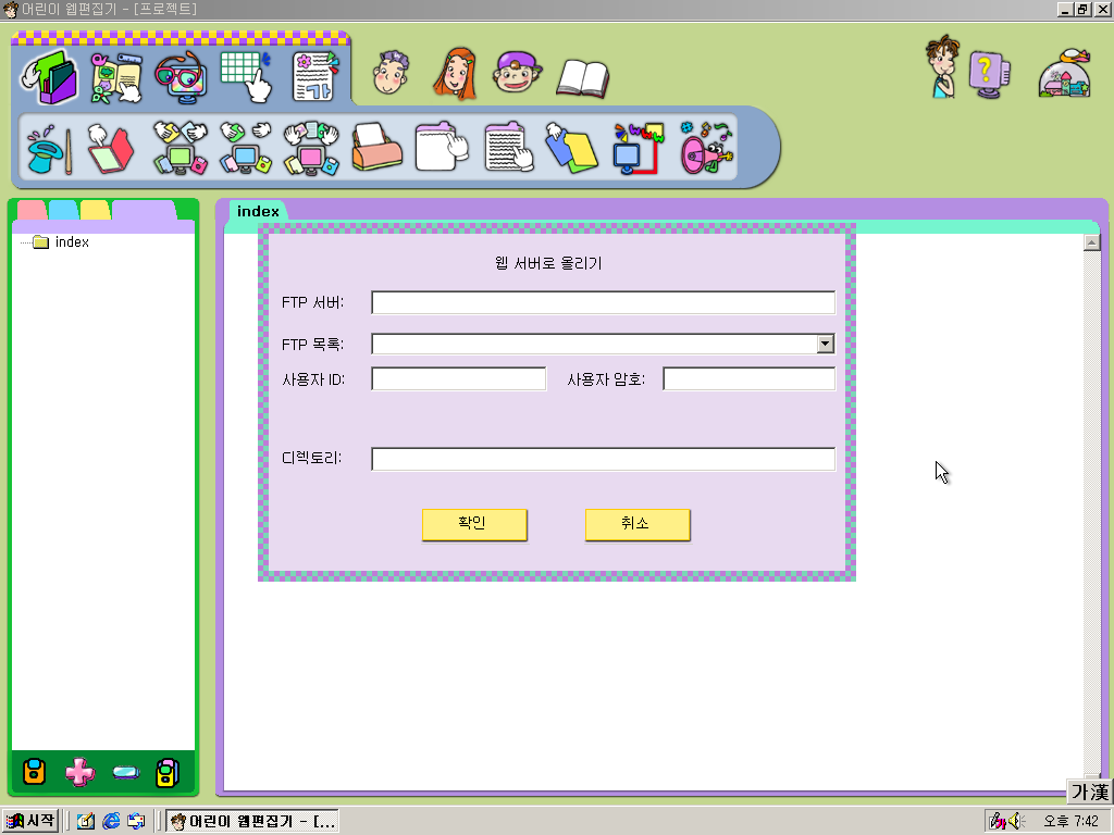 또 이렇게 FTP 서버에 파일을 올릴 수도 있습니다. 약간 마이크로소프트의 프론트페이지랑 비슷한 것 같습니다.