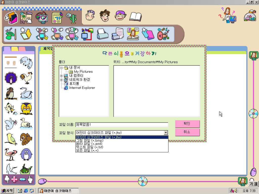 어린이 싱크와이즈 파일 확장자는 jtw입니다.