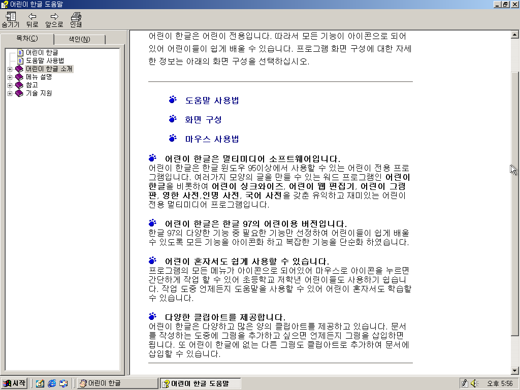 마지막으로 어린이 한글 안내문입니다. 개발자들의 노력은 보이지만, 기존 한글 프로그램과의 호환성을 고려했다면 더 좋은 프로그램이 나오지 않았을까 하는 생각이 듭니다.