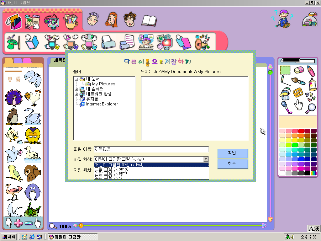 어린이 그림판 파일 확장자는 kwi라는 독자적인 확장자입니다.