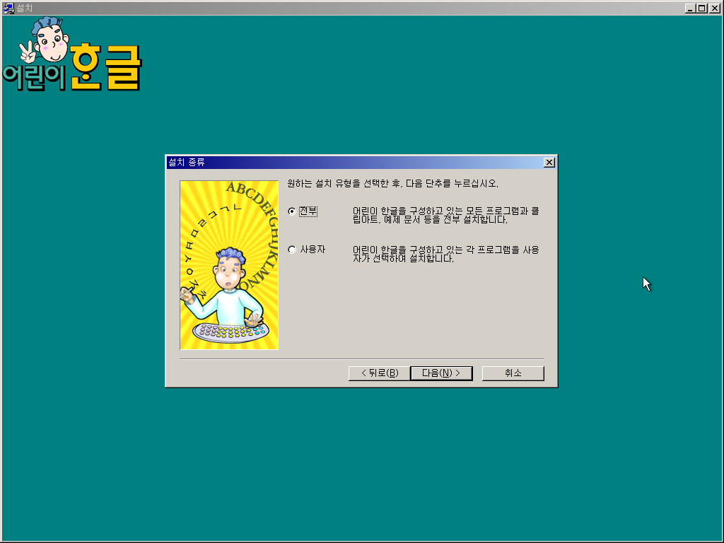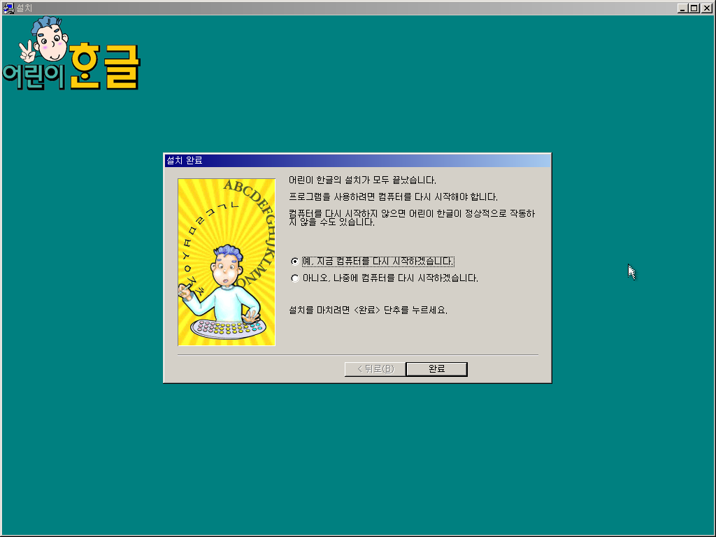 이상 어린이 한글 기능개선판 설치기였습니다.