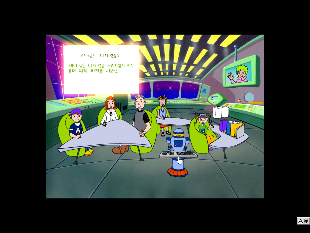 어린이 타자연습이 추가되면서 가운데 로봇을 선택하면 타자연습을 실행할 수 있게 되었습니다.