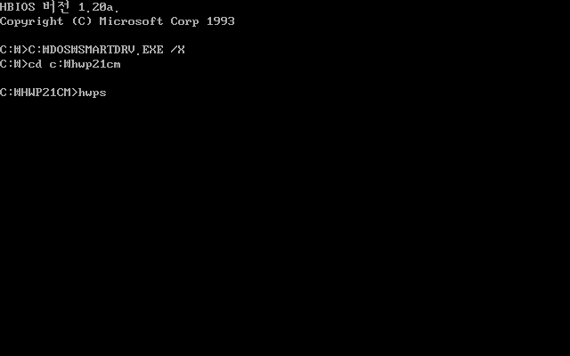 한글 2.1의 설치가 끝났습니다. 엔터를 눌러 도스로 나가줍니다.