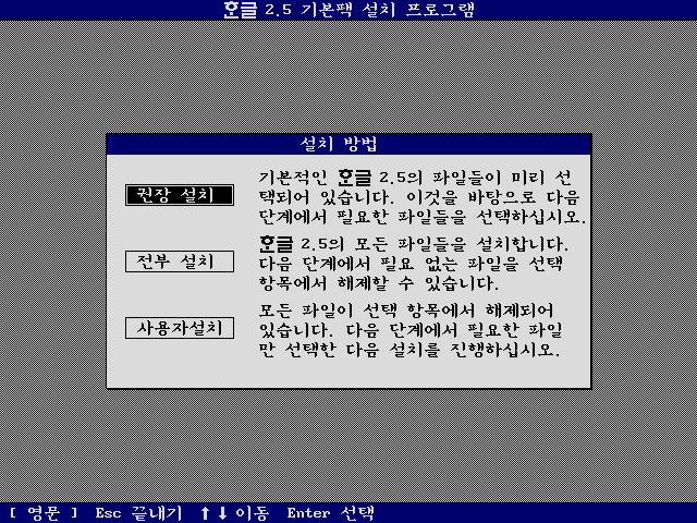 이상 한글 2.5 설치기였습니다.