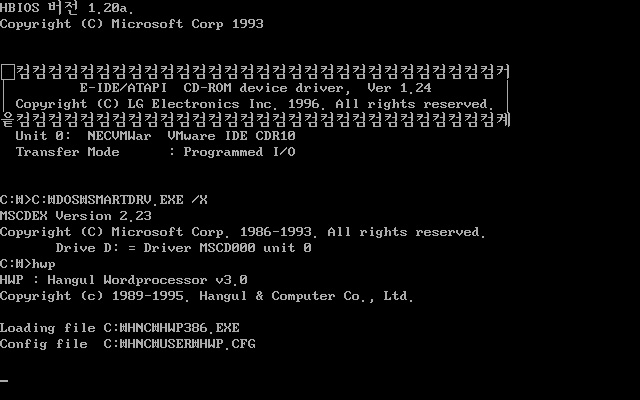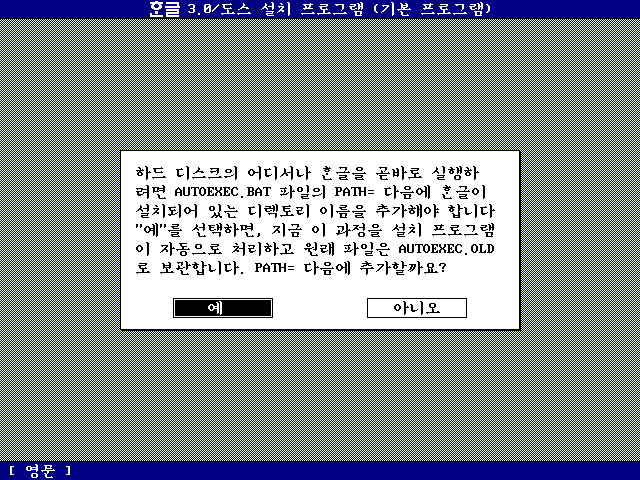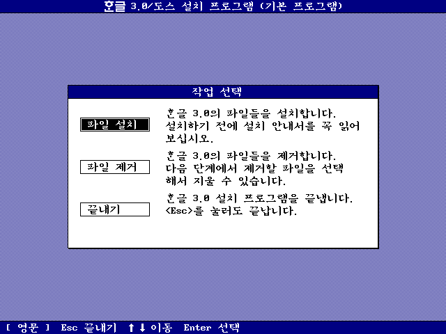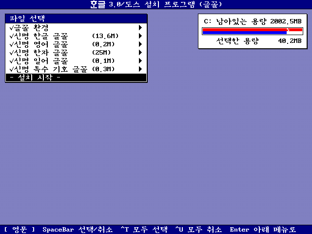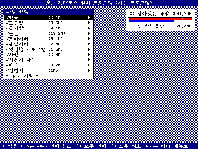 일단 한글 3.0 도스용 설치는 끝났습니다. 이제 꾸러미도 한번 설치해봐야겠죠?