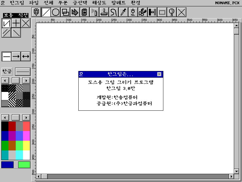 한그림 정보입니다. 한글 버전과 맞게 한그림 3.0입니다. 개발원이 한솔컴퓨터라는 곳이네요.