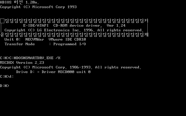 도스에서 CD롬을 사용하고 싶을 때 쓸 수 있는 도스용 LG CD롬 드라이버입니다. A드라이브에 넣고 install 하시면 됩니다. 설치 후에 재부팅하면 이렇게 D드라이브를 인식합니다. 3.5인치 720KB 디스크 한 장입니다.
