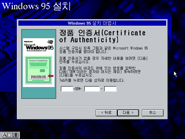 시리얼 번호를 입력합니다. 이전까지는 칸이 하나여서 일일히 다 입력해야 했는데, 이제는 사용설명서의 CD키 위치 그림도 나오고, 칸도 나뉘어져 있네요.